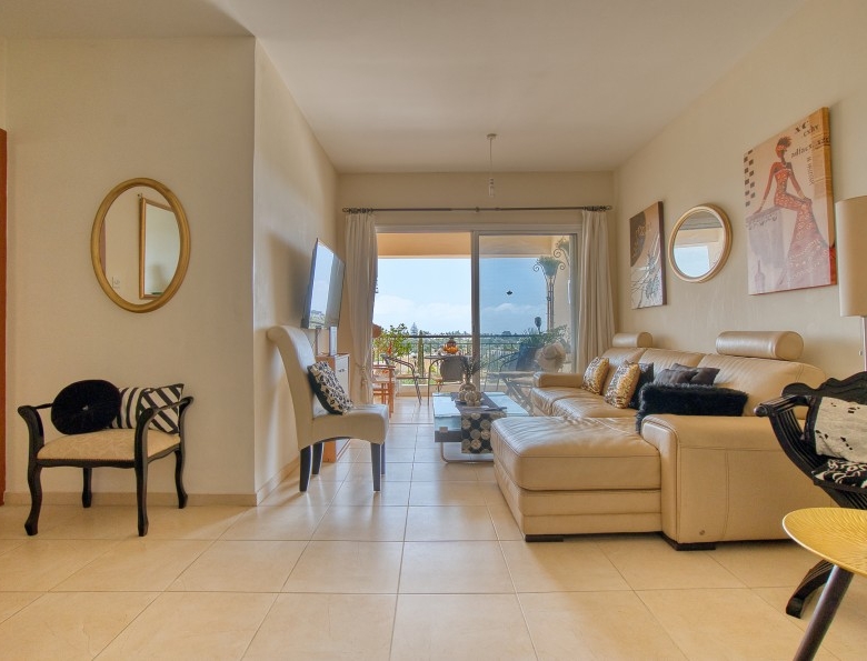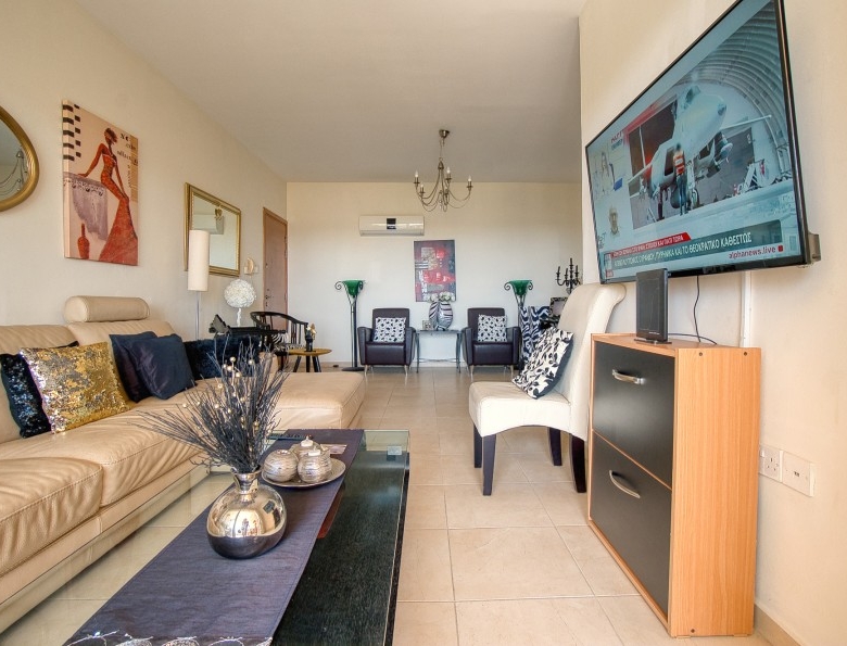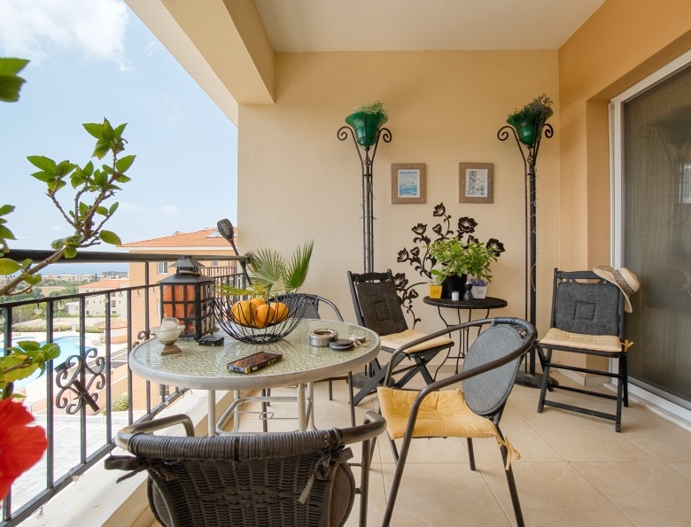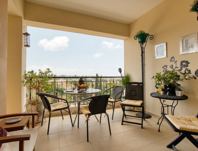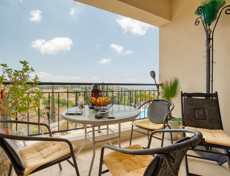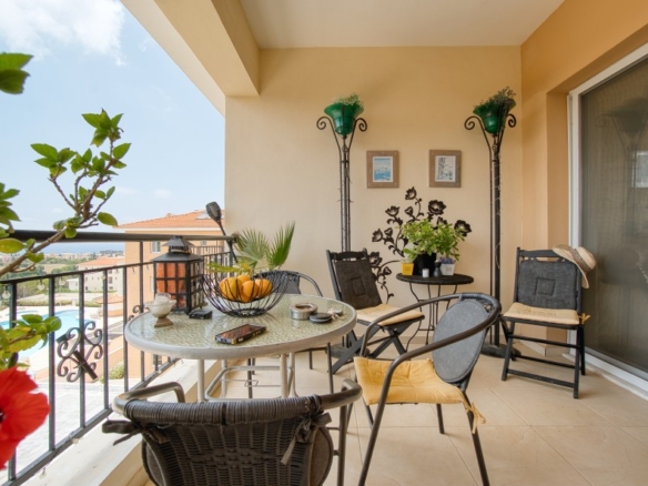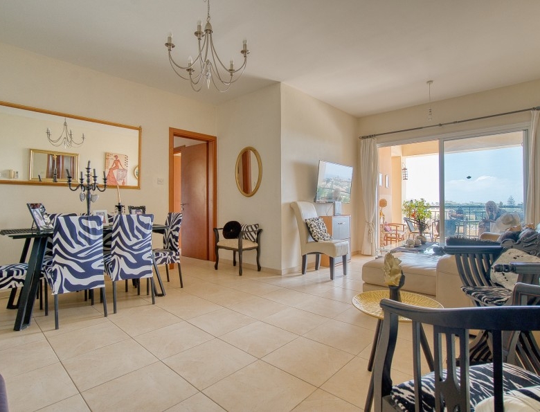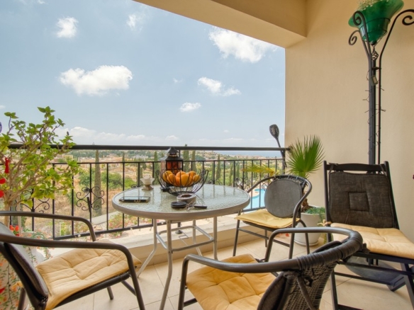 A spacious 2-bedroom apartment in a gated complex in the Chloraka area. Offering the perfect combination of comfort and convenience, this property is ideal for those seeking a tranquil environment to live in. Upon entering you will be greeted by the living and dining area. From the living area, sliding doors lead out to a covered balcony with seating areas and breathtaking sea and nature views. A beautiful and separate fully fitted kitchen with granite worktops, fitted with all the latest stainless steel and class appliances. A rear door leads out to a private balcony from the kitchen area. You will also find beautiful bedrooms, a family bathroom, and a master bedroom with an en-suite bathroom. All bedrooms have sea views and a shared balcony with a seating area.