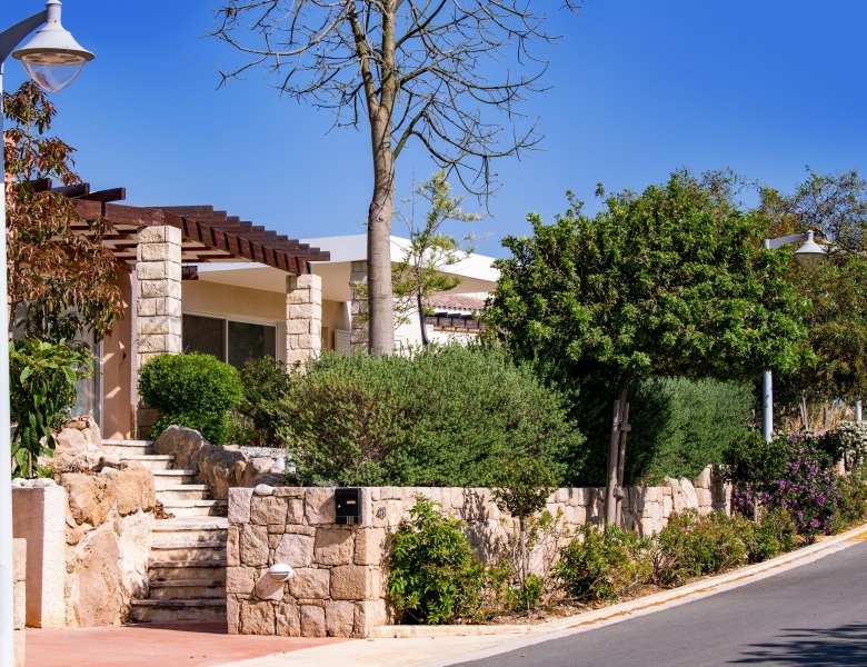 Located within a unique residential resort, just a short walk from the Paphos coastline and the blue waters of the Mediterranean Sea. These hilltop homes in Chloraka have a relaxing contemporary design with distinct Mediterranean features. All living areas have direct access to large verandas, terraces and gardens which surround the properties. All interior designs allow the sun and air to flow through. A luxury gated community that will boast large communal greens, two communal swimming pools, a clubhouse as well as a tennis court. In this special collection of exclusive homes, you will experience a mix of design and architecture with traditional features, comfort and construction into Mediterranean living. Mediterranean references to Cypriot stone villas, volumes, openings, large covered outdoor spaces, materials, stone, plaster, wood, tiled roofs, earthy colors, Mediterranean landscaped gardens.