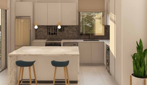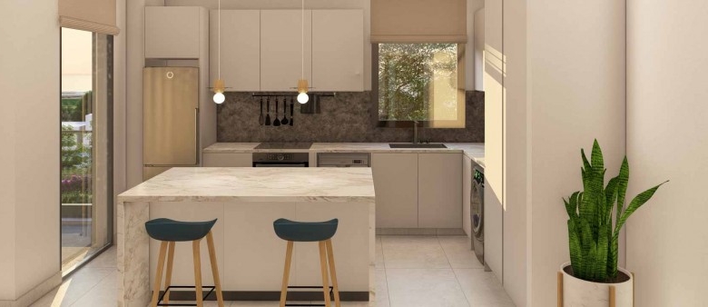 This is a three bedroom spacious apartment on its own floor. It enjoys an open plan kitchen area connected with a spacious living and dining area that have access to a covered veranda. The central location of the of the development offers unique access to all amenities and services, blue flag beaches, hotels, resorts, international golf courses, entertainment venues and shopping malls. The location will give future residents easy access to the Paphos International Airport and the Paphos to Limassol Highway.