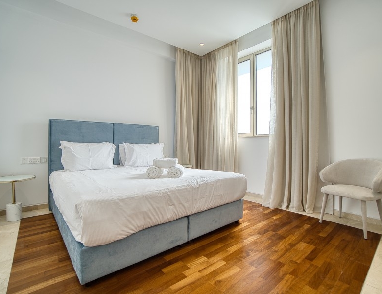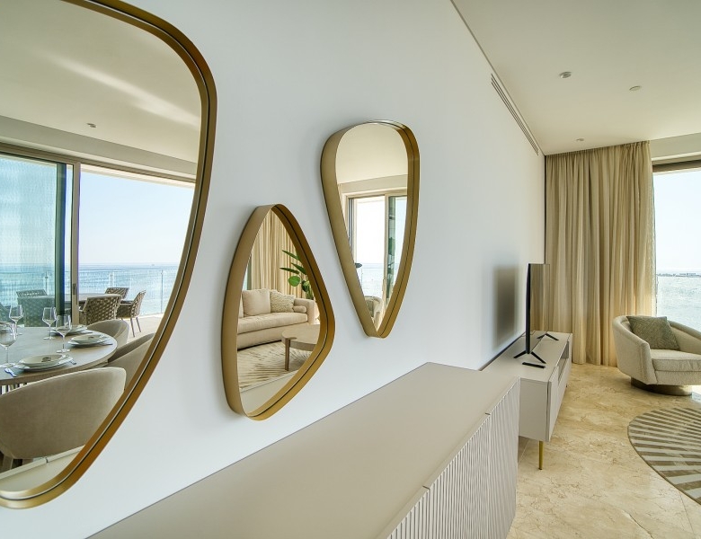 Unique residential resort and a celebrated Paphos landmark located at the city’s most privileged waterfront location. Consisting of two towers – the residential West Tower with 15 floors and the under-construction 5-star hotel chain on the East Tower with 16 floors – this resort is set to be the highest building in the city. Interior elements encompass high-quality materials and elegant finishes to combine maximum design with exceptional technical performance. Each of the 50 fully furnished and turnkey-equipped apartments will have its terrace, where residents will be able to enjoy the unobstructed sea views, the golden Mediterranean sunsets, and spend quality time with family and friends. The residences accommodate a gym, a spa, a swimming pool, sports facilities, a park, a playground, and stunning gardens – all essential commodities that invite relaxation and a comfortable lifestyle. Additionally, the resort will be surrounded by luxury hotels, nightlife, schools, universities, and hidden gems to be discovered. The breathtaking views of Paphos seafront, the harbor with its picturesque castle, and the panoramic views of the vibrant city add the perfect lasting touches to an already stunning project.
