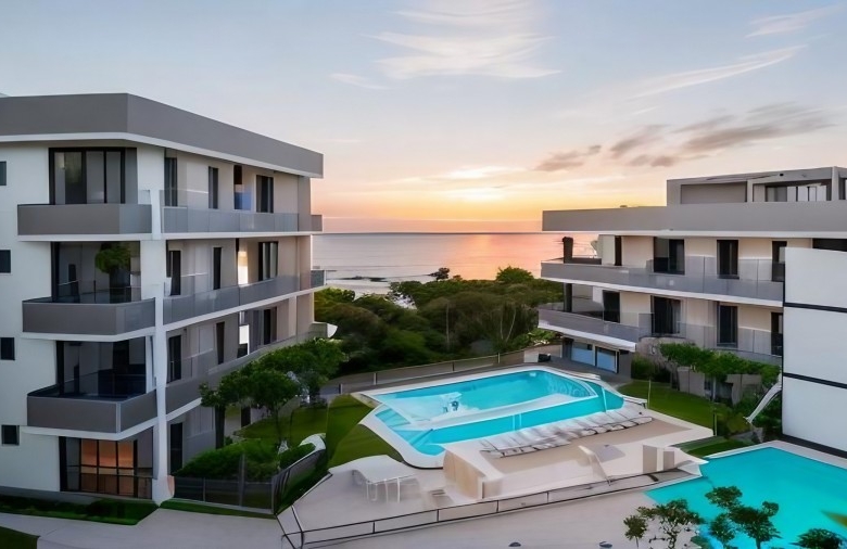 An exclusive project that redefines modern living. Comprising of two contemporary blocks of apartments, this development is a perfect fusion of style, convenience, and coastal charm. Nestled in the picturesque Mouttalos area of Paphos, offering the luxury of being a stone’s throw away from the tranquil embrace of the beach. The apartments, ranging from 1 to 3 bedrooms, are meticulously designed to provide spacious and comfortable living spaces to suit various lifestyle preferences. Convenience is paramount. Each apartment comes with its own private parking space, ensuring easy and secure access to your abode. For your shopping needs and daily essentials, stores are conveniently located nearby, adding to the overall ease of living.Indulge in relaxation at the refreshing swimming pool, a tranquil oasis within the premises. As you lounge by the pool, you’ll be greeted by breathtaking sea views, creating a serene ambiance that’s perfect for unwinding after a long day. The project’s prime location ensures you’re only minutes away from the beautiful sea and the historic medieval castle of Paphos. Additionally, the esteemed Paphos Kings Avenue Mallis just a short 5-minute drive away, offering an array of shopping, dining, and entertainment options. For travelers, Paphos Airport is a mere 25 minutes away, ensuring hassle-free journeys. Furthermore, golf enthusiasts will delight in the proximity to the main golf resort area of the country, just 20 minutes away. The apartments’ internal areas range from a generous 42m² to a spacious 98m², providing ample room for you to tailor your living space to your desires. Embrace modern living, where every detail has been carefully curated to offer you a lifestyle of comfort, convenience, and coastal elegance.