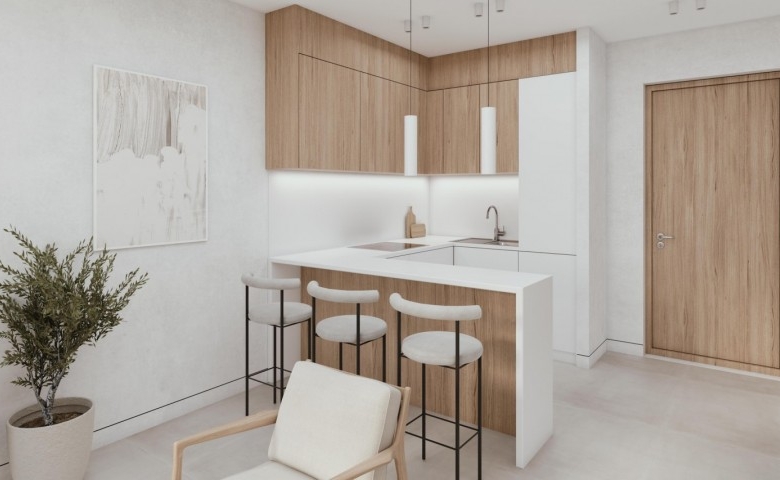 Designed apartments over three floors, offering a selection of 1- and 2-bedroom residences. Each apartment combines modern style with elegance, maximizing space and comfort.The development is seamlessly integrated with the green area to the northwest and includes beautifully landscaped gardens with sustainable plants. Stylish lobby area, designed to welcome residents and guests, fully equipped with disabled access to ensure inclusivity for all. Additional amenities include a communal pool and a well-equipped gym, providing both leisure and fitness options for residents.Delivery – November 2026