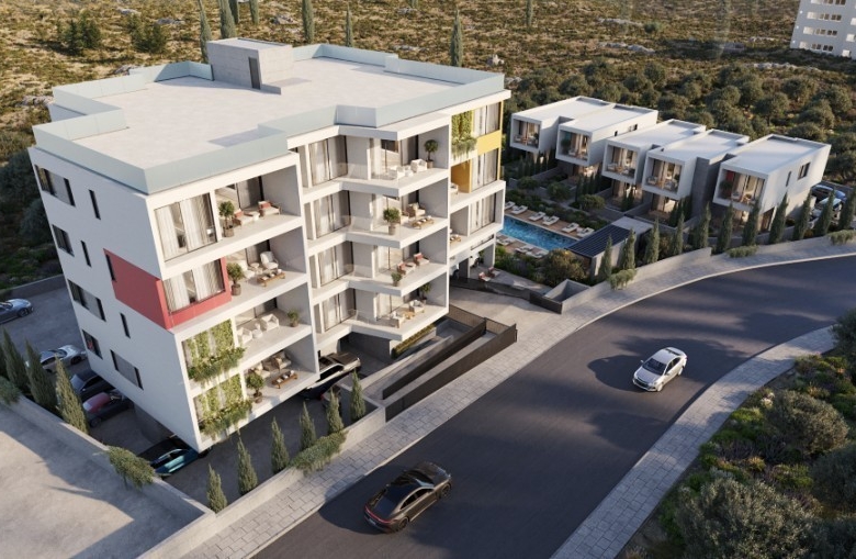 This exclusive development features 24 modern apartments and 5 elegant townhouses, designed to elevate your lifestyle to new heights. Located in a prime spot in Cyprus, just steps from Aspire Private British School, a 5-minute drive from the city centre, and within walking distance of the beautiful Venus Beach. Some apartments offer stunning sea views, others boast amazing mountain views, all with spacious layouts designed for comfort and style; residents enjoy a communal pool, secure parking, and the convenience of being close to both the beach and city center—perfect for those seeking a blend of relaxation and urban living.Delivery-September 2027
