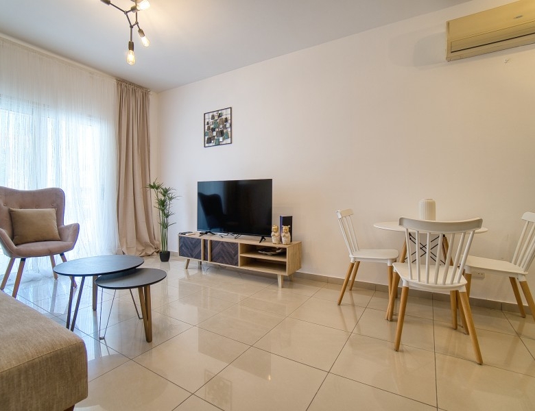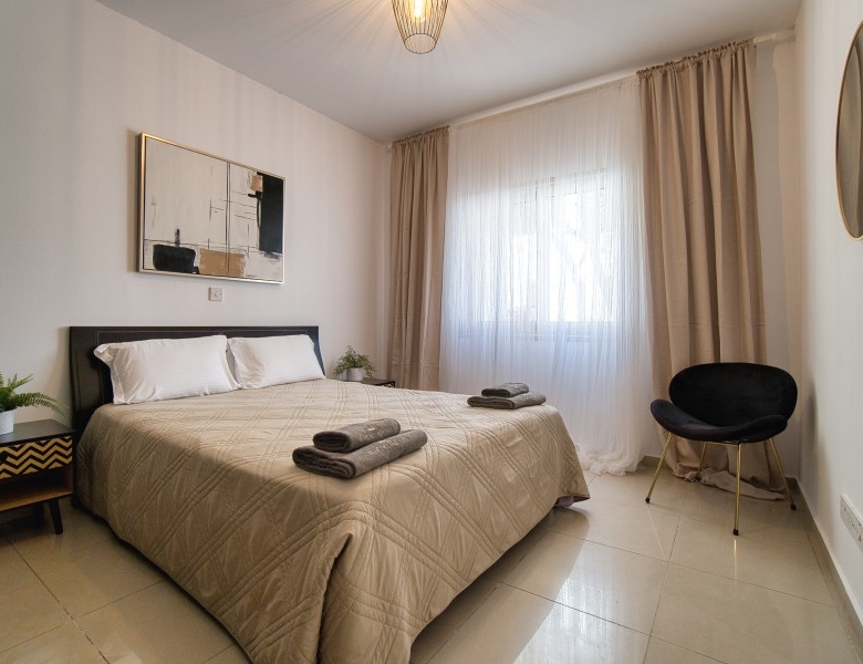 Oracle Exclusive Resort – A Cozy 1-Bedroom Apartment in the Heart of PaphosPerched on a scenic hill, Oracle Exclusive Resort offers breathtaking panoramic views of the sea and an unbeatable location in the heart of Paphos. Just a 20-minute walk from the vibrant Pafos Harbor, beautiful sandy beaches, and renowned cultural and historical landmarks, this resort is an ideal destination for relaxation and exploration. The centerpiece of the resort is a large swimming pool surrounded by comfortable lounge chairs, perfect for soaking up the Mediterranean sun. This ground-floor 1-bedroom apartment is thoughtfully designed to provide all the comforts of home. Upon entering, you are greeted by an open-plan living area featuring a cozy sofa, a coffee table, a flat-screen TV, wireless internet, and a dining table with seating for four. Adjacent to the living area is a fully equipped kitchen that includes everything you need for a self-catering holiday, such as a fridge/freezer, oven, cooker, microwave, coffee machine, toaster, washing machine, cookware, utensils, and tableware. Sliding glass doors lead to a furnished terrace overlooking the peaceful inner courtyard with the pool. The double bedroom boasts a spacious closet and bedside tables with lamps, offering a serene retreat for restful nights. Nearby, a small corridor houses the bathroom and an additional closet. Both the living area and bedroom are equipped with air conditioning units for cooling and heating. The apartment is fully supplied with bedding, bath towels, beach towels, a hairdryer, an iron, and an ironing board. Electricity and Wi-Fi are included in your stay.Nearby Attractions:Panayia Chrysopolitissa Church: Just a short walk from the apartment, this 13th-century church was built over the ruins of the largest early Byzantine basilica on the island. It features the legendary St. Paul’s Pillar, where Saint Paul is believed to have been flogged before the Roman governor Sergius Paulus converted to Christianity.Tombs of the Kings: A UNESCO World Heritage Site located 10 minutes away by car or accessible via a nearby bus stop (3 minutes’ walk). This ancient necropolis features underground tombs carved from solid rock, some dating back to the 4th century BC.Paphos Archaeological Park: A must-visit UNESCO World Heritage Site, only a 20-minute walk from the apartment. Marvel at the exquisitely preserved mosaics dating from the 3rd to 5th centuries AD, a testament to the city’s rich history.Experience the perfect blend of modern convenience, historical charm, and Mediterranean serenity at Oracle Exclusive Resort. Whether you’re relaxing by the pool, exploring ancient ruins, or savoring the beauty of Paphos, every moment promises unforgettable memories.