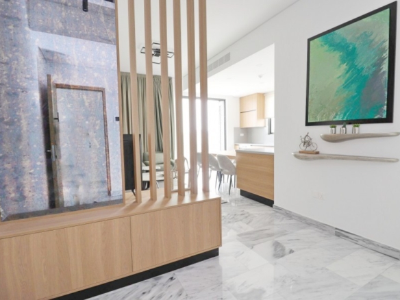This luxury apartment is located in the heart of Universal Area in a small and luxurious development, very close to the shops, to the beaches, Paphos Mall, Paphos Harbour and many more. Taking the lift on the 3rd floor you will find the entrance door of the property. Upon entering you will be greeted by the very welcoming entrance hall , on your left you will find the very tastefully decorated lounge/dining area and the very modern fully equipped kitchen with all the latest appliances. The sliding doors are providing access to the large covered veranda with sitting/relaxation areas, storage room and the laundry. From the entrance hall on your left you will also find the family bathroom, the spacious double bedroom and the master bedroom with en-suite facilities. On the ground level you will find the covered parking space of the apartment, the large swimming pool and the landscaped gardens. The attraction of this project is the unique design, high quality finishes and prime location in Universal area, Paphos. The property has a lot of extras which can be given upon request, some of them are VRV air conditioning system, underfloor heating, alarm system etc.Kato & Pano PaphosPaphos is a beautiful coastal city in the southwest of Cyprus and the capital of this district. Paphos is broken down into two parts Kato Paphos (lower) and Pano Paphos (upper). This is a vibrant city full of the hustle and bustle of local life with plenty of restaurants, tavernas, bars and nightlife. Paphos was selected as a European Capital of Culture for 2017 and has undergone an exciting regeneration program. The Old Centre of Paphos is visually pleasing with many historic colonial buildings which house the areas government institutions.