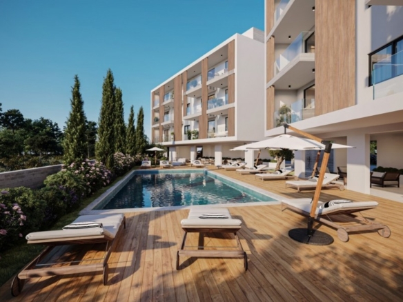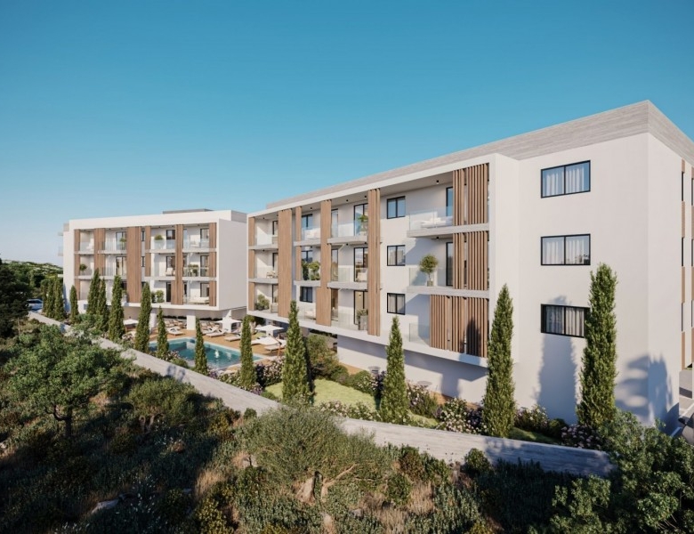 Project comprises of 2 blocks of studio, 1-bedroom and 2-bedroom apartments and a plethora of on-site facilities. It is located in the sought-after area of Universal in Pafos, the most popular area for short-term rentals in Cyprus. Consisting of 27 units in total, a reception area, a fitness centre, covered communal areas, kids playground, landscaped gardens and a 80 square-meters swimming pool, is an ideal project for both investment and permanent living. Delivery – Q3 2027