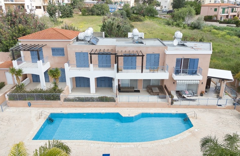 This project is located in a very popular area of Peyia. Facilities on site include a large residents’ pool with relaxation areas, fabulous well-kept gardens and walkways. The project is located within few-minute drive to all the amenities, restaurants, beaches, bank, supermarkets. Nearby there is a well-known TLC Private school. This spacious property has an open plan large living/dining areas and a cosy kitchen with a breakfast bar. Patio doors from the living area lead out to a good sized covered veranda (14sqm) and private garden. There are 3 large bedrooms with fitted wardrobes, master bedroom has en-suite facilities and family bathroom concludes the property. Uncovered parking lot and storage available. The property is sold furnished.