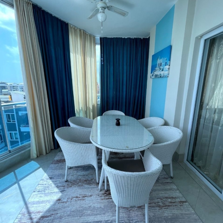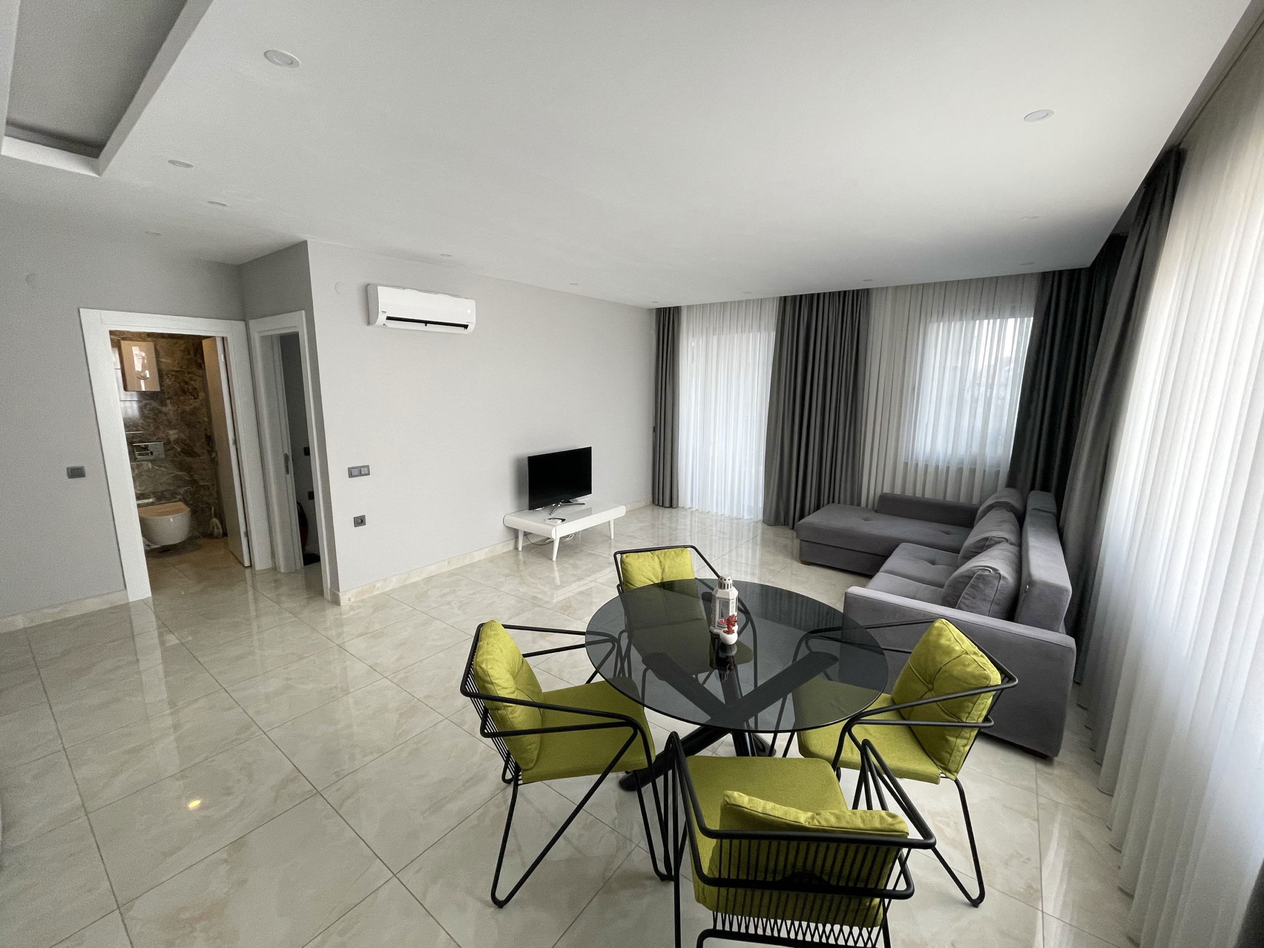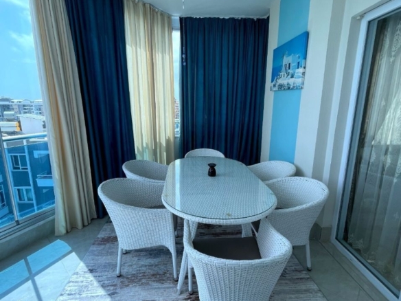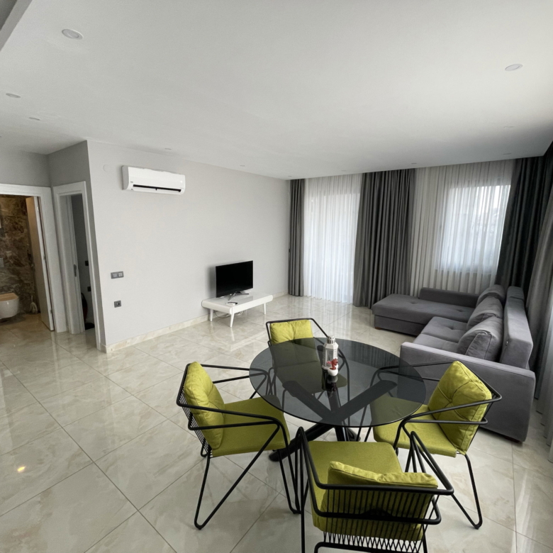 It’s not every day you come across a 3-room, 110 m² apartment in Tosmur that looks and feels this fresh. Most homes in this part of Alanya still carry furniture and finishes from decades past, but this residence in Toprak Riverstar breaks the pattern. With its clean contrast of white, black, and grey, a glass balcony that pulls in the light, and carefully chosen details that make daily living easy, it offers exactly what many international buyers hope to find but rarely do.