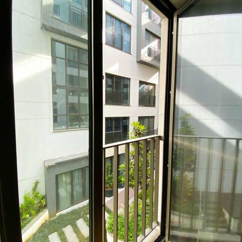 Windows & Doors: Large windows allow in abundant daylight, making the rooms bright and airy. In the living area, a wide glass door opens to a French balcony, enhancing the sense of space. Dark-toned frames contrast nicely with the light interior finishes.