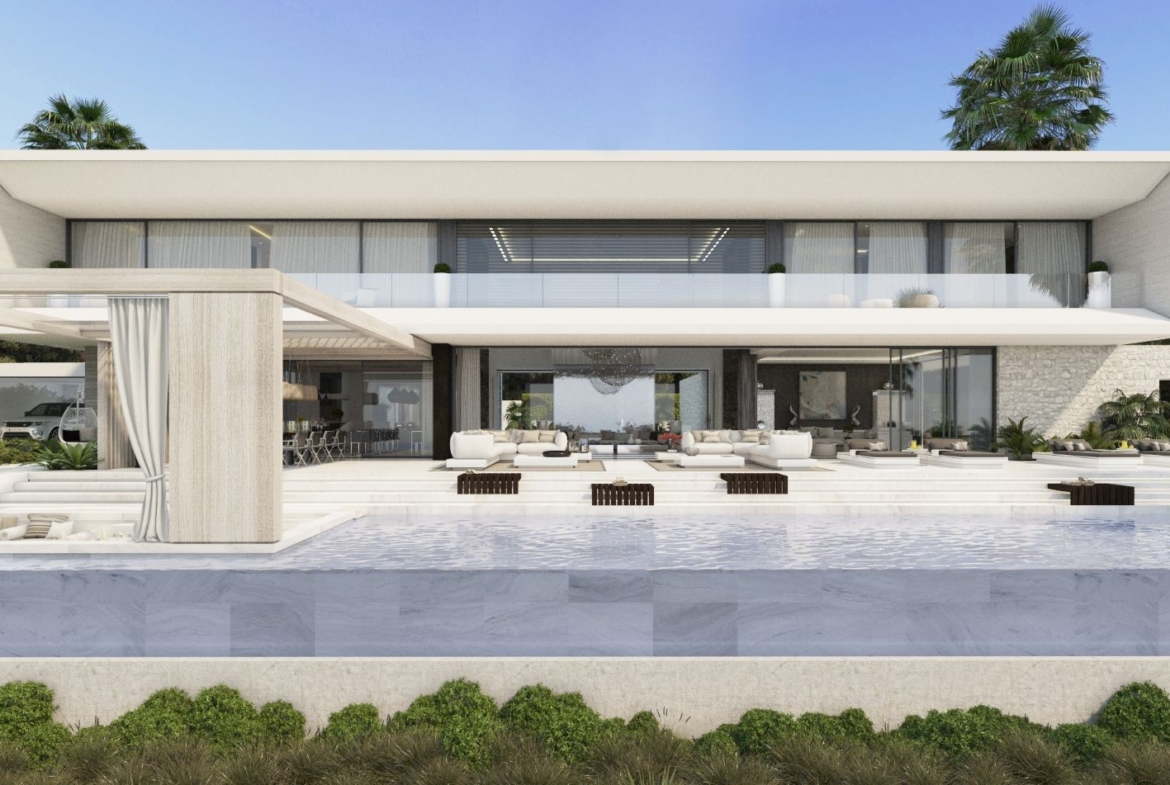 BRAND NEW ARCHITECTURAL MASTERPIECE This stunning 8 bedroom suite contemporary masterpiece is located in the exclusive El Madroñal gated residential neighborhood in a quiet location and affording spectacular mountain and sea views from both the expansive living areas and bedrooms.