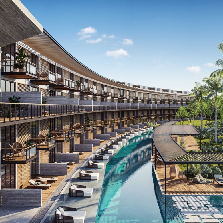 AWA Corasol enjoys a prime location in Playa del Carmen, providing direct access to the vibrant Fifth Avenue, known for its upscale shopping, fine dining, and entertainment. The development is only five minutes from the city center, forty-five minutes from Cancun International Airport, and forty-five minutes from Tulum. It is an ideal choice for full-time residents and those seeking a vacation home with investment potential.