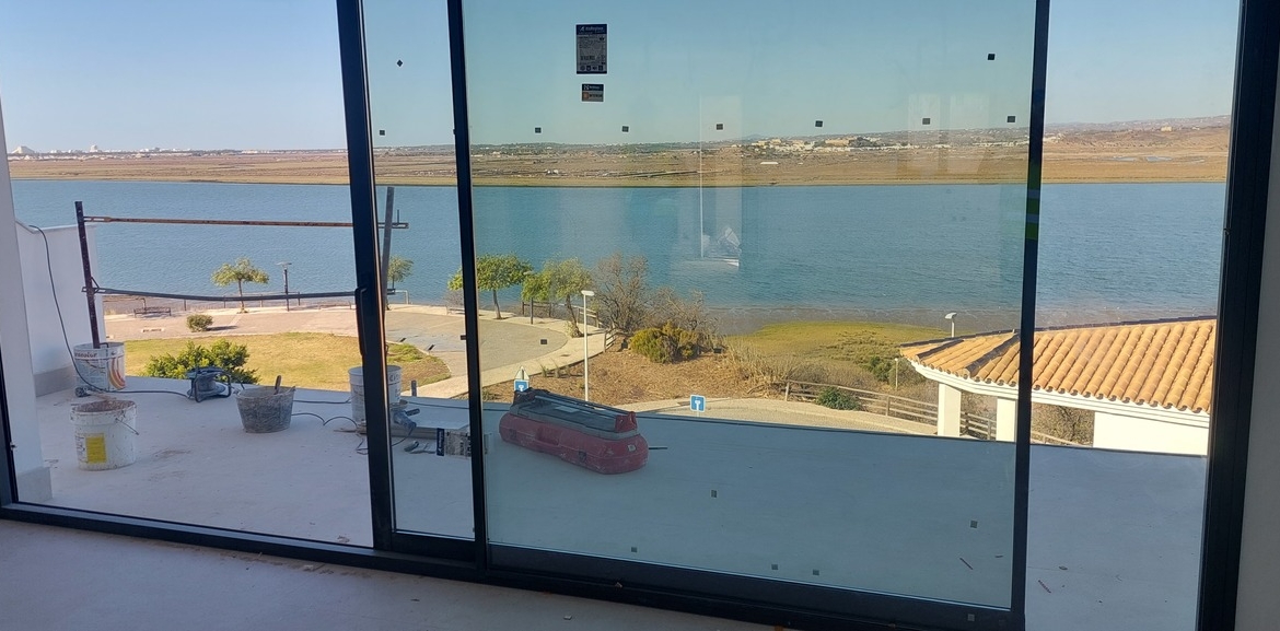 Stunning Brand New Townhouses with views across the River Guadiana to the Portuguese Algarve for Sale in Spain! 2 Bedrooms, 2 bedrooms with built-in wardrobes. Large open plan living room with fully fitted kitchen and top quality appliances, 2 west facing terraces with a total of approximately 22 m2. Roof terrace with approx. 20 m2. Garage space in underground car park.. Communal swimming pool. Fantastic view of the river Guadiana and Portugal.Show Home now available to view!