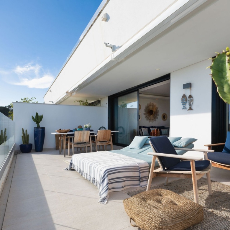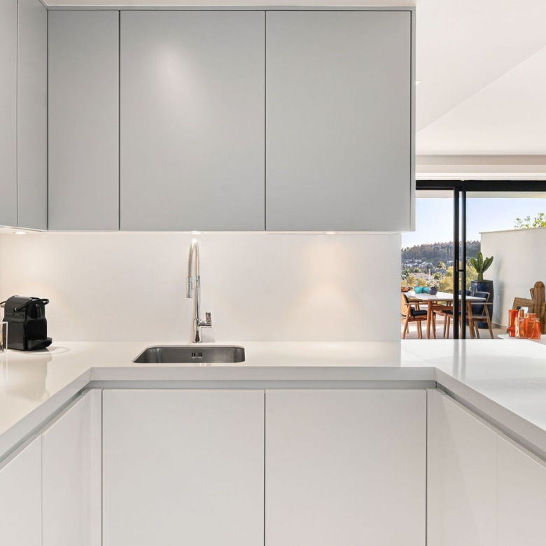 Designed with an open-plan layout, the kitchen, dining, and living areas seamlessly connect to the terrace, creating a bright and airy atmosphere. The Master bedroom suite also enjoys direct access to this outdoor space.