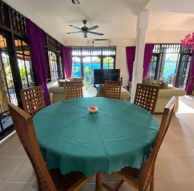 Set on 370 sqm of land, this west facing property has approximately 300 sqm of living space and is sold on a LEASEHOLD title of 23 years. The two storey villa consists of 3 bedrooms, 3 bathrooms, enclosed living/dining area, fully fitted kitchen, pool, staff quarters, laundry area, covered carport and an established garden.