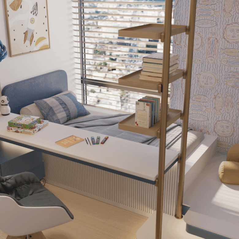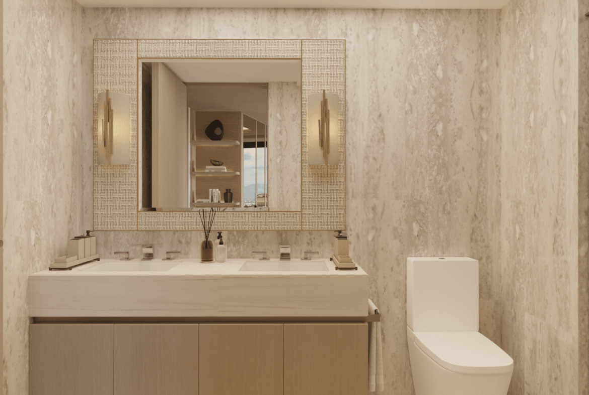 The 2-Bedroom Residence welcomes you into a spacious open-concept living room that seamlessly connects with a generous kitchen and dining area — perfect for both everyday living and entertaining guests. Step out onto your private balcony and take in the sweeping cityscape, bringing light and inspiration into your home.