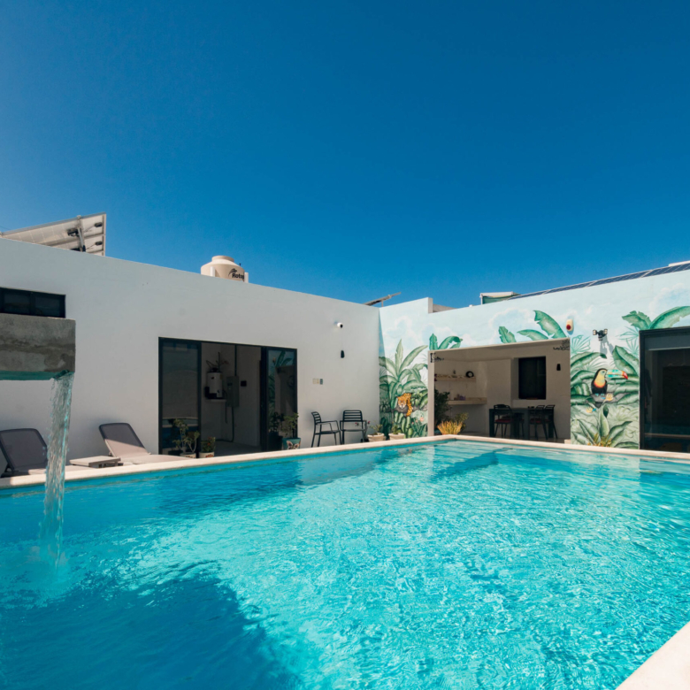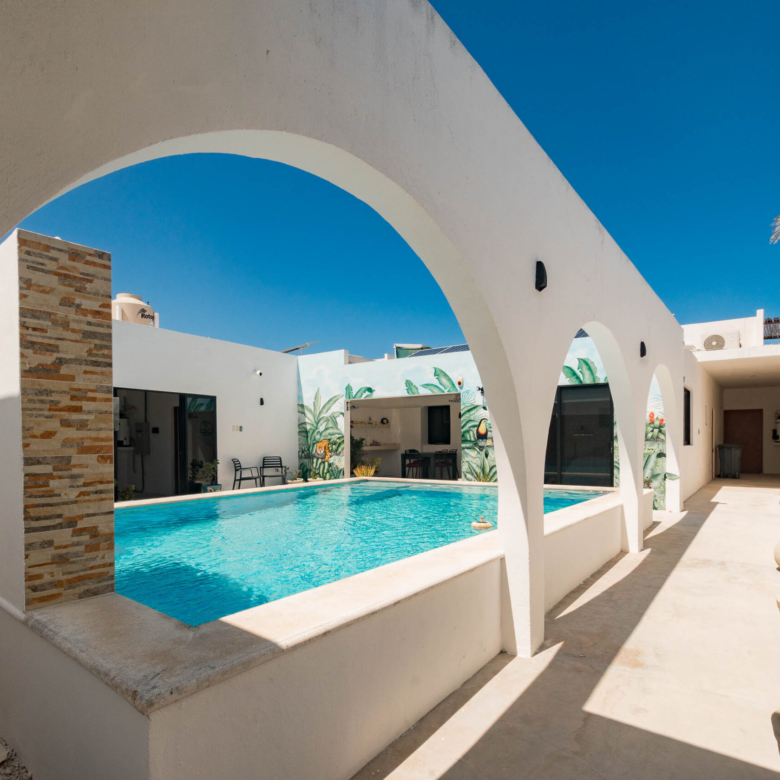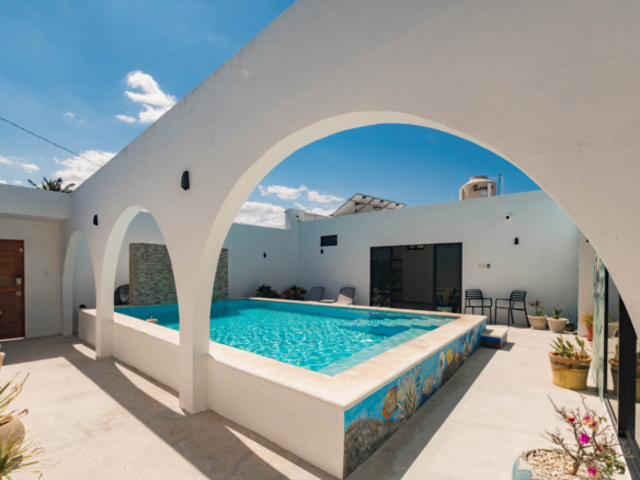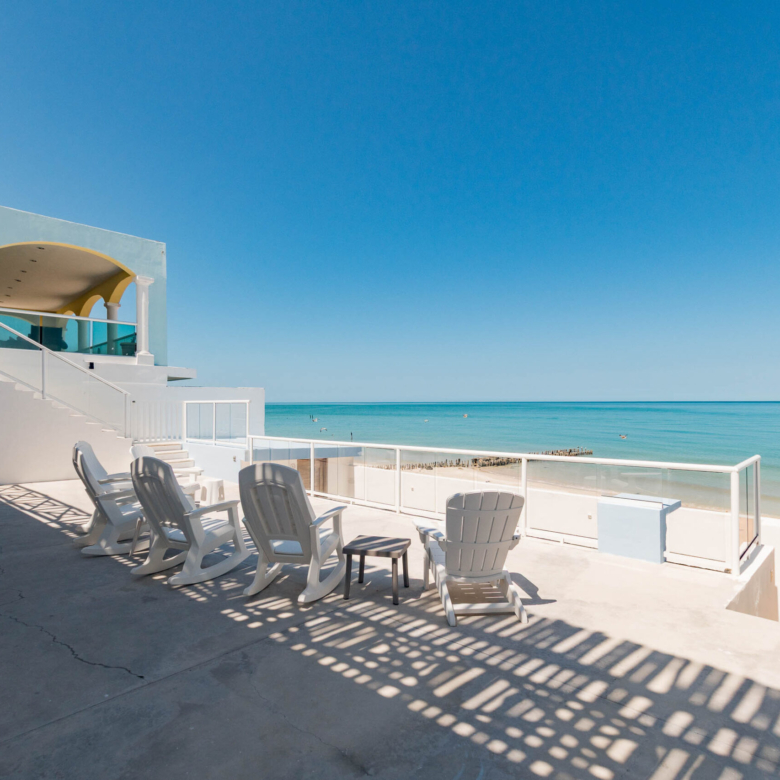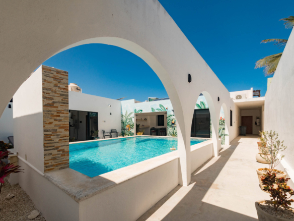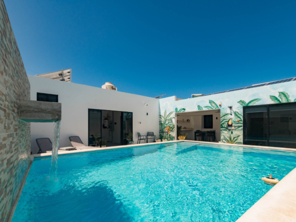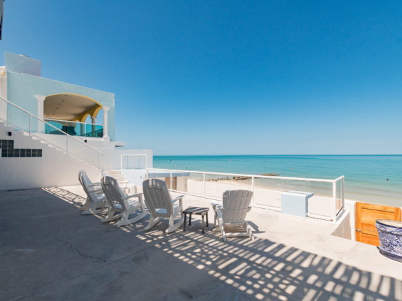 Oceanfront Paradise in Chelem, Yucatán – Fully Furnished Beachfront Villa Wake up to the soothing sounds of the waves and embrace the breathtaking ocean views from this stunning beachfront villa on the Emerald Coast. Thoughtfully designed for luxury and relaxation, this fully furnished home offers a seamless blend of indoor comfort and expansive outdoor living. The villa features 4 spacious bedrooms, including 2 with ensuite bathrooms, and 3 full bathrooms in total. The open-concept living area seamlessly connects the lounge, dining space, and a well-appointed kitchen, creating an inviting atmosphere for entertaining or simply unwinding by the sea. The master suite is a true retreat, boasting a jacuzzi whirlpool jet tub for ultimate relaxation. Outdoor living is at the heart of this property, with two expansive beachfront terraces perfect for enjoying the ocean breeze, a large private pool with a cascading waterfall situated at the center of the lot, and a spacious rooftop terrace offering breathtaking panoramic views—ideal for entertaining or stargazing under the night sky. This exceptional villa is equipped with 24 solar panels and a 10,000 kW Generac whole-house generator, ensuring uninterrupted comfort and energy efficiency. With nine air conditioning units, a water softener, and a triple osmosis water system, every detail has been considered to provide year-round convenience. Three wells and two extra-large seawalls add security and durability to this beachfront oasis. Additional features include a garage with an electric door, a comprehensive security system, and three large storage bodegas. The villa is move-in ready and comes fully furnished, including four televisions and two refrigerators, making it an effortless choice for those looking for a turnkey beachfront escape. Located in the charming coastal town of Chelem, this villa is perfect as a private retreat or an income-generating rental property. Experience the beauty of oceanfront living with every modern luxury at your fingertips. Contact us today to schedule your private viewing of this spectacular beachfront paradise.