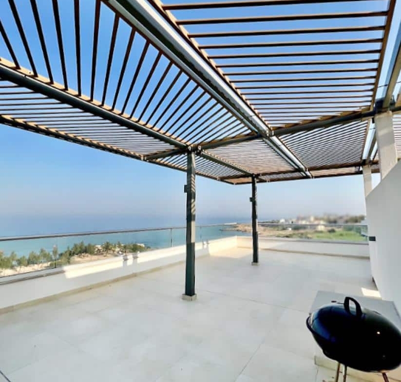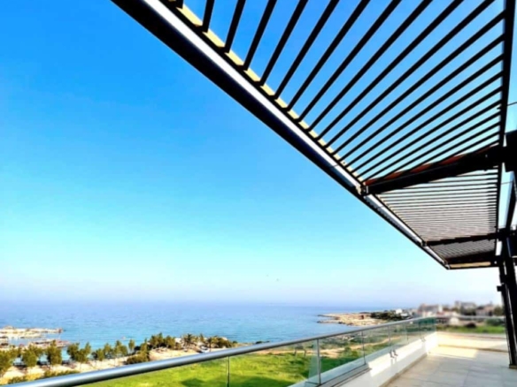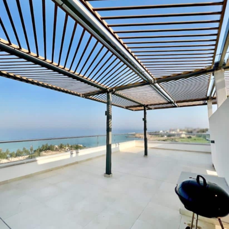 Experience the ultimate coastal retreat in this charming three bedroom beachfront penthouse located in Protaras. With direct access to the sandy shores and crystal clear waters, this flat offers a perfect blend of comfort and tranquility. The interior features a contemporary design with an open-plan living area that maximizes space and light. Large windows offer breathtaking sea views, and the private balcony is perfect for relaxing while enjoying the gentle sea breeze. The bedrooms are cozy with an amazing view of the sea.