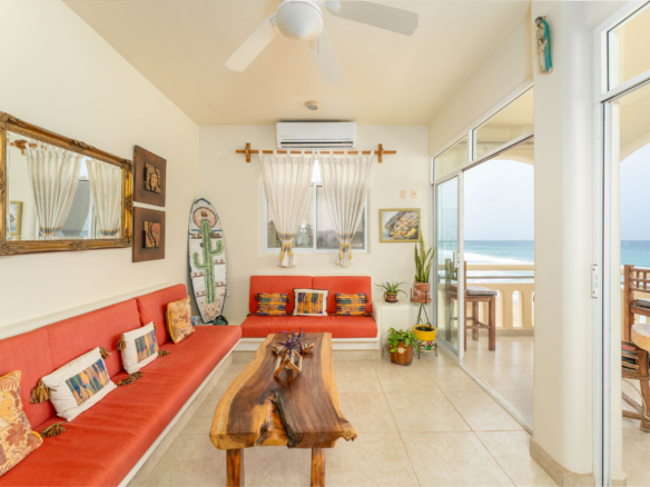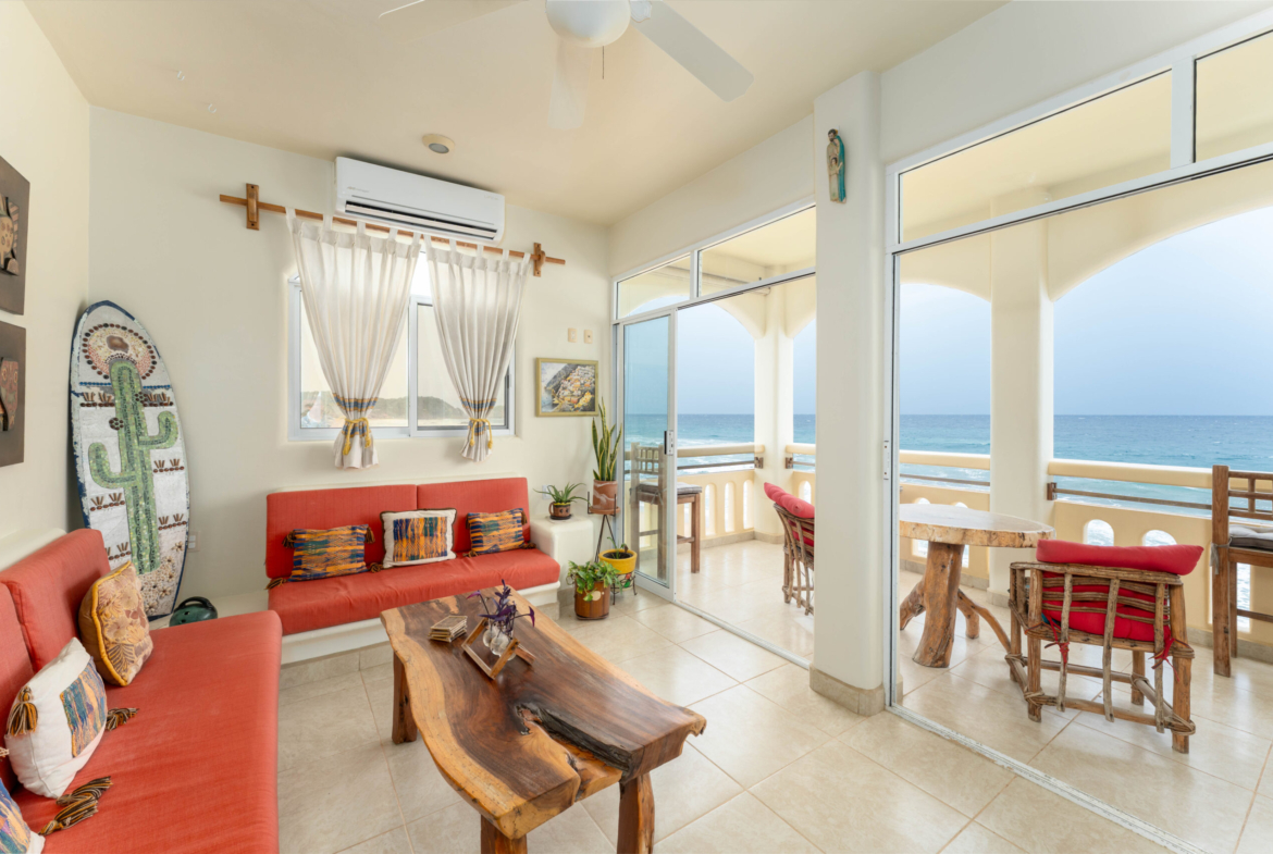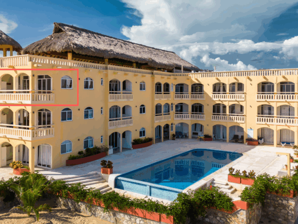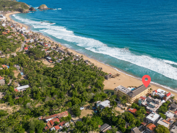 Located beachfront on Zipolite beach. This beautifully maintained 2-bedroom, 2-bathroom penthouse offers 884 Ft2 of thoughtfully designed living space in the exclusive Monarca development. With direct beach access to Zipolite Beach, this residence combines privacy, comfort, and the ultimate beachfront lifestyle. Perched on the top floor of the exclusive Monarca development, this penthouse offers easy and convenient access to an expansive, palapa-covered rooftop—a shared oasis perfect for dinner gatherings, workouts (complete with a bench, free weights and mat), yoga sessions, remote work or simply unwinding in a hammock or on comfortable furniture with a book in hand. Sold fully furnished and recently upgraded, this turnkey property is ready for you to move in and start living your coastal dream. Just 50 meters away, the town of Zipolite offers an effortlessly walkable lifestyle. From fresh fruit and vegetable stands to bakeries, gelato shops, pharmacies, ATMs, and even a car wash, everything you need is within reach. Zipolite is a one-of-a-kind coastal community, known for its free-spirited energy, yoga centers, beachfront restaurants, and laid-back vibe. Whether you’re soaking in the natural beauty or stepping out to explore the area’s vibrant dining and wellness scene, this location has it all. Set within a secure, gated beachfront community, this condo offers a peaceful and private retreat with a thoughtfully designed layout. Ideal as a tranquil escape or a low-maintenance coastal home, the property also features a large common swimming pool and direct beach access. Reliable Starlink connectivity is available on the rooftop, in the parking area, and in the manager’s office—ensuring you stay connected no matter where you are on the property. Don’t miss the opportunity to own a slice of paradise in one of Mexico’s most iconic beach towns—where comfort, convenience, and coastal charm come together effortlessly.