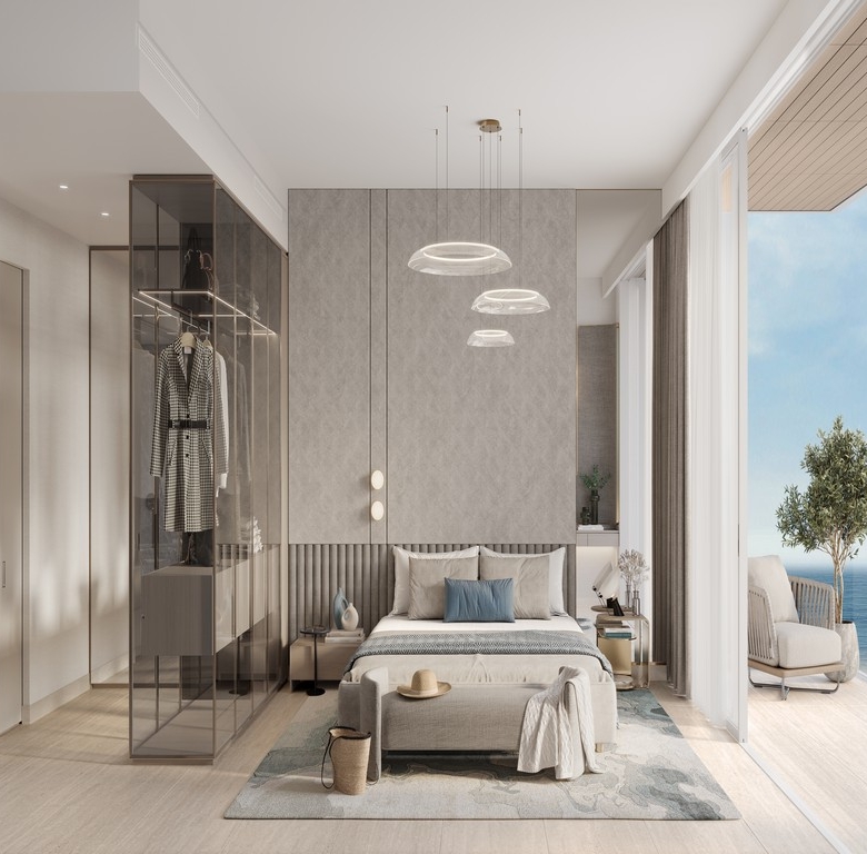 Spacious bedrooms with floor-to-ceiling windows showcasing sweeping sea views