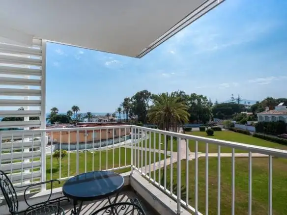 BEACHSIDE- Located in a beachfront complex in San Pedro playa, just five minute drive and within walking distance to wide range of of amenities in San Pedro old town and Puerto Banus. The complex offers private outdoor parking spaces for residents, a tennis court and two delightful restaurants. This apartment is situated on the second floor, west-facing to enjoy afternoon sunshine with splendid views overlooking the communal gardens and Mediterranean sea. The apartment has been recently renovated with all electrical wiring replaced, all walls freshly plastered smooth, new high quality wooden laminate flooring throughout in addition to refurbished bathroom suites and new double glazed sliding patio doors, opening onto the peaceful terrace. It comprises of entrance hall, living-dining area, renovated kitchen with breakfast bar, guest bedroom, guest bathroom and master bedroom with en-suite bathroom. Great rental income all year round!