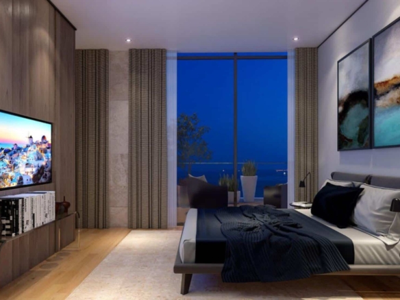 Welcome to your dream three bedroom flat, perched high atop a magnificent tower overlooking the sparkling seascape. This luxurious residence offers an unparalleled living experience with breathtaking, unobstructed views of the vast ocean stretching out as far as the eye can see. As you step into the flat, you are greeted by a tastefully designed and impeccably furnished living space. The open plan layout seamlessly connects the living, dining, and kitchen areas, creating an inviting atmosphere for relaxation and entertainment. Floor to ceiling windows surround the entire space, allowing natural light to flood in and providing an uninterrupted panorama of the mesmerising sea.