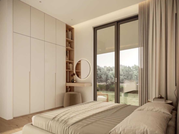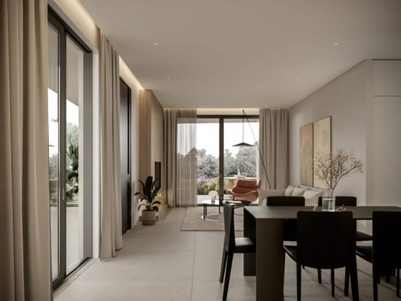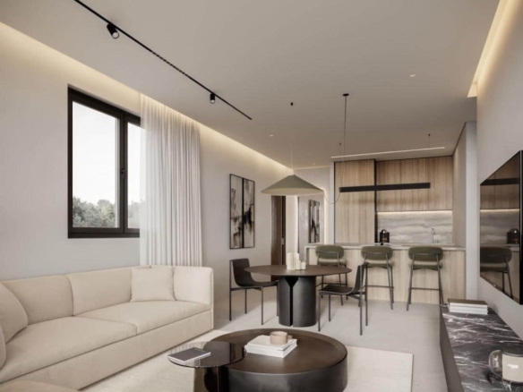 This architectural masterpiece seamlessly blends glass, steel, wood, and concrete, creating a unique urban oasis. The apartments feature spacious layouts, sun-drenched interiors, and generously sized verandas with glass fronts, offering captivating views and ample natural light. Key features include solar energy panels, double-glazed windows, thermal insulation, built-in wardrobes, and designer kitchens and bathrooms, with open-plan layouts perfect for relaxation and entertainment. Enhanced security is provided through a secure entry-phone system, and residents benefit from covered parking spaces and efficient waste management. The building’s thoughtful configuration emphasizes exclusivity and privacy, while its tranquil location offers quick access to major roads. The building epitomizes modern luxury, blending visionary design with lavish interiors for an unparalleled contemporary living experience.