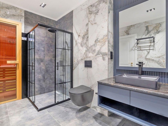 Nestled in the picturesque Bektaş area of Alanya, this exquisite villa presents an unmatched living experience, combining opulence with breathtaking natural beauty. Enveloped by panoramic views of the sea, lush greenery, and the iconic castle, this splendid residence is a testament to sophisticated living.The villa boasts a generous 275m2 of meticulously designed space, offering four spacious bedrooms and three modern bathrooms, ensuring ample room for comfortable family living or entertaining guests. The open-plan American kitchen seamlessly integrates with the living area, creating a warm and inviting atmosphere, perfect for social gatherings or cozy family dinners.Key features of the property include:- Fully furnished interiors with elegant and contemporary design.- A large 25m2 balcony offering stunning vistas of the surrounding landscape.- A 30m2 garden terrace, perfect for al fresco dining or leisurely relaxation.- Two years old, ensuring modern construction and design standards.- Exclusive amenities such as a private pool, sauna, and jacuzzi for ultimate relaxation and leisure.Set within a secure duplex complex, the villa prioritizes safety and convenience with 24-hour security, a state-of-the-art camera system, and a password entry system. Residents can enjoy the lush landscaped gardens, complete with a dedicated gardener, ensuring a well-maintained and serene environment year-round.The project also offers a host of recreational facilities including a playground, sports area, and a traditional Turkish bath, catering to the diverse needs of its residents. Ample parking, with both indoor and outdoor options, further enhances the convenience of living in this prime location.Embrace the opportunity to own this luxurious property and indulge in the serene lifestyle offered by the project. With its unique blend of privacy, luxury, and stunning views, this villa stands out as a premier choice for discerning buyers. Don’t miss your chance to experience the epitome of refined living in Alanya. Take the first step towards your dream home today and uncover the myriad benefits this exceptional villa has to offer.