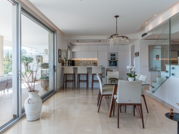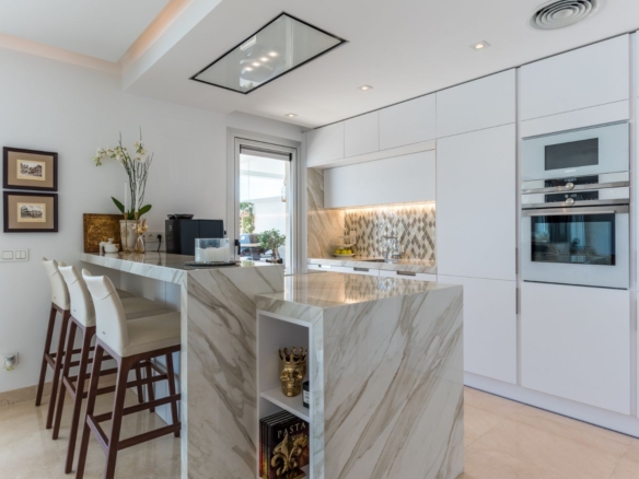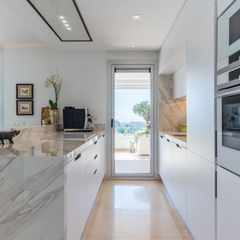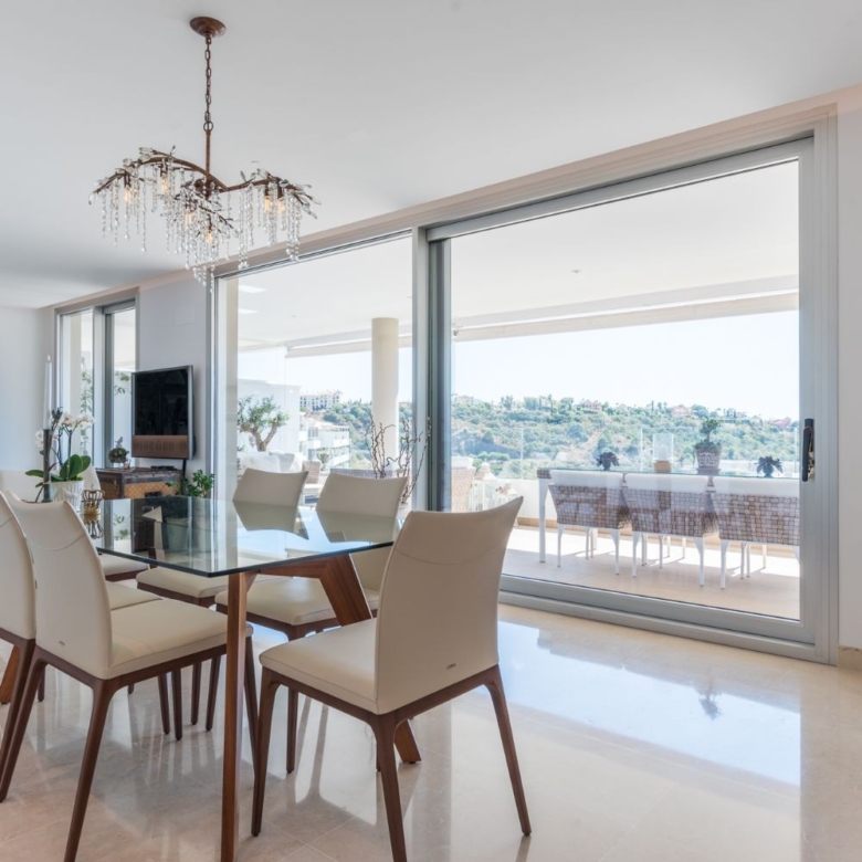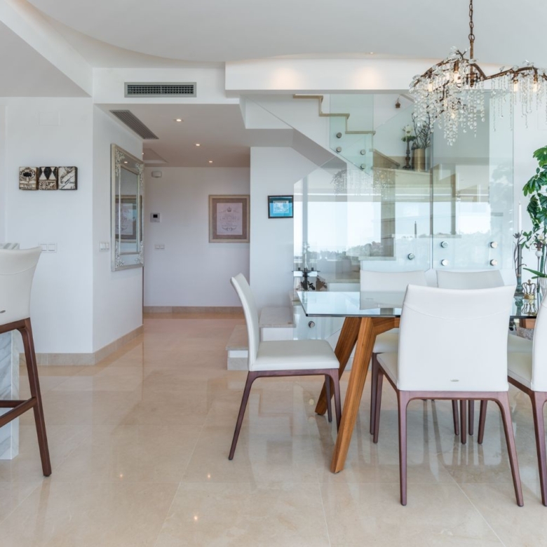 A magnificent spacious penthouse with a wow factor! Located in an enclave of La Reserva Alcuzcuz – a very demanded address and location on the Costa del Sol due to its proximity to San Pedro de Alcantara, Puerto Banus, Marbella, and Estepona City. It is just minutes away from famous La Zagaleta and surrounded by numerous up market golf resorts like La Quinta Golf and Los Naranjos to name a few. Here you find tranquility, whilst being just a few minutes to the town life of San Pedro and its beach promenade. There are numerous amenities like restaurants, bars, shops and other commercial units within a 2 minutes drive from Reserva Alcuzcuz.