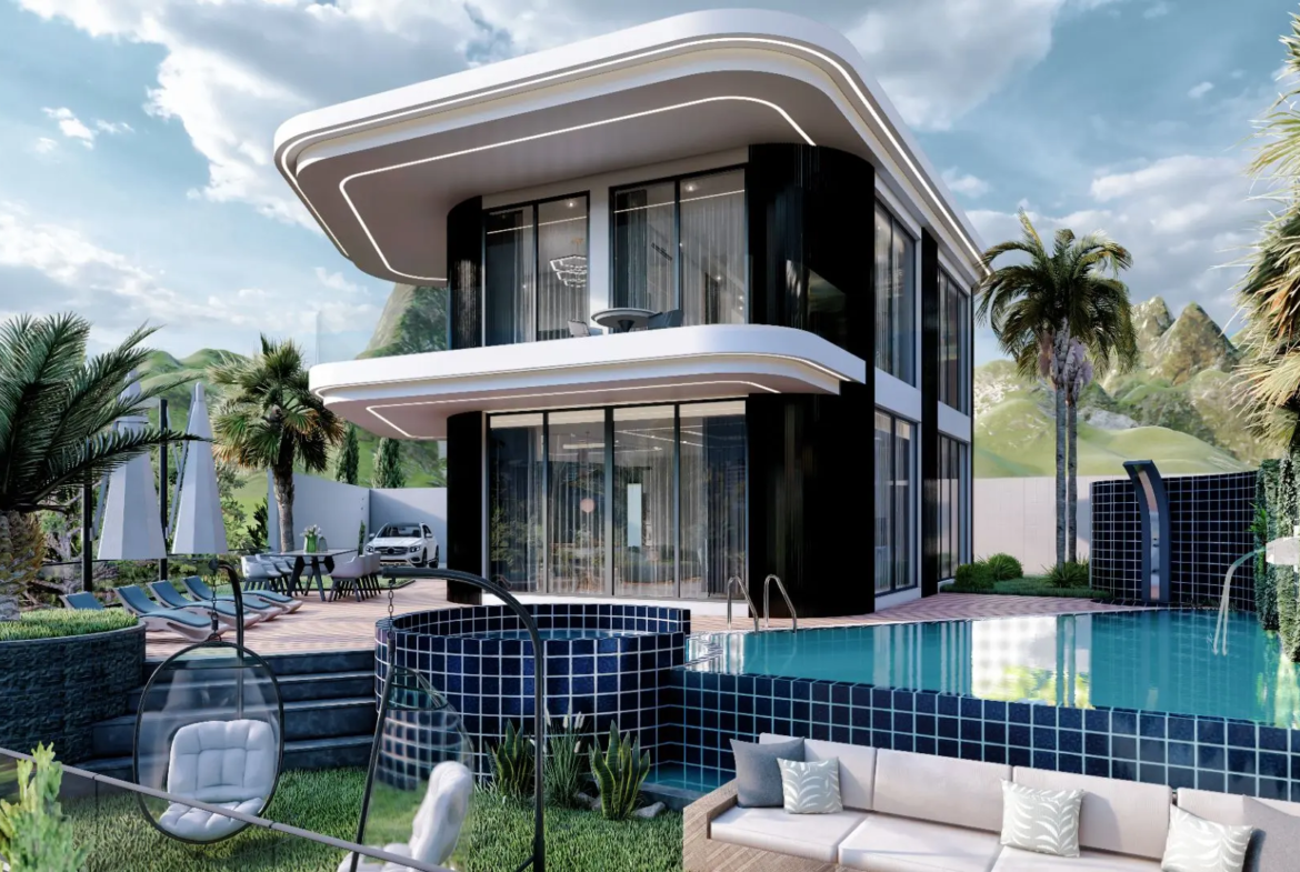 Discover the epitome of coastal luxury with these stunning villas located on a generous 1336 m2 plot. Each villa boasts a spacious 445 m2 area and offers an opulent living experience with three bedrooms and a breathtaking view of both the castle and the sea. Nestled just 1500 meters from the pristine shoreline, these villas are the perfect blend of elegance and convenience.Main Features:- Three luxurious villas on a 1336 m2 plot- Each villa spans 445 m2 with a 3 + 1 layout- Private parking for each villa- Private gardens and swimming pools- Magnificent sea and castle views- Proximity to the beach: 1500 meters- Close to Mahmutlar center: 2500 meters- Alanya center is only 15 km away- Gazipaşa Airport is just 40 km awayGround Floor:- Spacious living room: 59.00 m2- One bedroom: 16.00 m2- Bathroom: 6.00 m2- Expansive terrace: 58.00 m2- Private pool: 40.00 m2First Floor:- Master bedroom: 41.00 m2- Second bedroom: 20.00 m2- First bathroom: 6.00 m2- Second bathroom: 5.00 m2- Additional terrace: 24.00 m2- Corridor: 11.00 m2What sets these villas apart is their unparalleled views and prime location, offering a serene yet convenient lifestyle. The private amenities, such as the garden and pool, provide a sanctuary of relaxation and luxury. Embrace the coastal living experience with these exclusive villas that promise not only a home but a lifestyle upgrade.Don’t miss the opportunity to own one of these extraordinary properties. Act now and contact us to learn more about how you can secure your dream villa today. These villas are a rare find and are sure to be snapped up quickly. Embrace the luxury and comfort that these coastal villas offer.