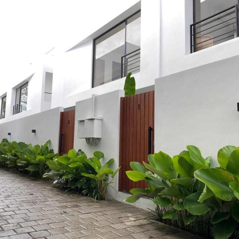 Thoughtfully visualized and well finished throughout, the villa is sold on a LEASEHOLD OF 25 years with the option to extend 25 years. The property has a living space of approximately 100 sqm over 2 levels and features a very welcoming sunken lounge, open-plan living/dining area along with a full kitchen. The 6 metre long swimming pool and outdoor lounge area merge seamlessly with the indoor living space creating a relaxed oasis, full of light and airflow. The bedroom is bright yet cozy with a luxurious ensuite bathroom. There is also private parking for your scooter. Its sophisticated design also boasts a 20 sqm roof top terrace, the perfect spot for sunset cocktails while taking in the views.