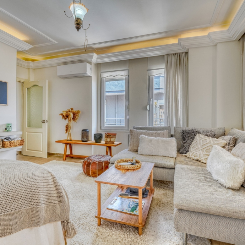 This furnished apartment for sale in Alanya Center stands just steps from the world-famous Cleopatra Beach, offering a rare combination of city energy, bohemian charm, and high investment potential. With a total size of 48 m², it is perfectly suited for those seeking a walkable coastal lifestyle, surrounded by Alanya’s most iconic locations.