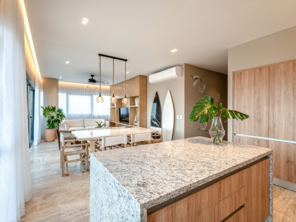 Designed for comfort and elegance, the penthouse features an open-concept living and dining area, high-end finishes, and expansive floor-to-ceiling windows that maximize natural light. The private sundeck and terrace create the perfect setting for relaxation while overlooking the stunning Yucatán coastline.