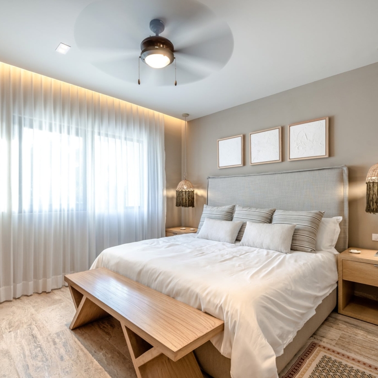 This exclusive 4-bedroom, 5-bathroom penthouse at Bonanza, located within Yucalpetén Resort Marina in Progreso, Yucatán, offers a sophisticated coastal living experience. Spanning 303.6 square meters (3,267 square feet), this spacious residence provides panoramic ocean and marina views, seamlessly integrating luxury with functionality.