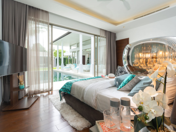 Located in a private, secure estate in Cherngtalay near the Laguna area, this beautifully renovated 5-bedroom villa offers a rare combination of modern luxury, privacy, and tropical charm. Just minutes from Bang Tao Beach and lifestyle hubs like Boat Avenue and Porto de Phuket, this home is ideal for discerning buyers seeking a high-quality residence in one of Phuket’s most sought-after neighborhoods. Set on a 600 sqm Chanote land plot with a usable area of 430 sqm, the villa features premium construction, high-end finishes, and stylish designer interiors. The entire property has been recently and thoroughly renovated, with updated structure and finishes. Property Details: Location: Cherngtalay, Phuket (near Laguna) Price: THB 50,000,000 Land Size: 600 sqm Usable Area: 430 sqm Bedrooms: 5 (including separate guest suite/office/gym) Bathrooms: 5 ensuite + 1 guest bathroom Ownership: Leasehold Completion Year: 2010 (fully renovated in 2023) Furnishing: Fully furnished with premium furniture and décor Monthly Common Fee: THB 6,642 Key Features: Designer villa with elegant Moroccan-inspired interiors Fully equipped Western kitchen with Franke & Smeg appliances Wine cooler, electric & gas stove, dishwasher, and water filtration Private saltwater pool, poolside sala, and landscaped garden Spacious rooftop terrace with panoramic views Detached 5th bedroom ideal for office, guest room, or gym Separate staff room with laundry Covered parking for 2 cars with electric gate Whole-house background music, 5 smart TVs, high-speed internet Jim Thompson textiles, luxury linens, complete kitchenware Solar panel installation underway for energy efficiency Watering system, outdoor shower, and CCTV security Community Features: Gated estate with 24-hour security Quiet, low-density residential setting Just minutes from beaches, restaurants, wellness centers, and schools Location Benefits:The villa is ideally positioned within walking distance to Project Artisan and just a short drive to Bang Tao Beach, Laguna Golf Course, and all major conveniences. Phuket International Airport is just 35 minutes away. Contact us today to schedule a private viewing or request more information.