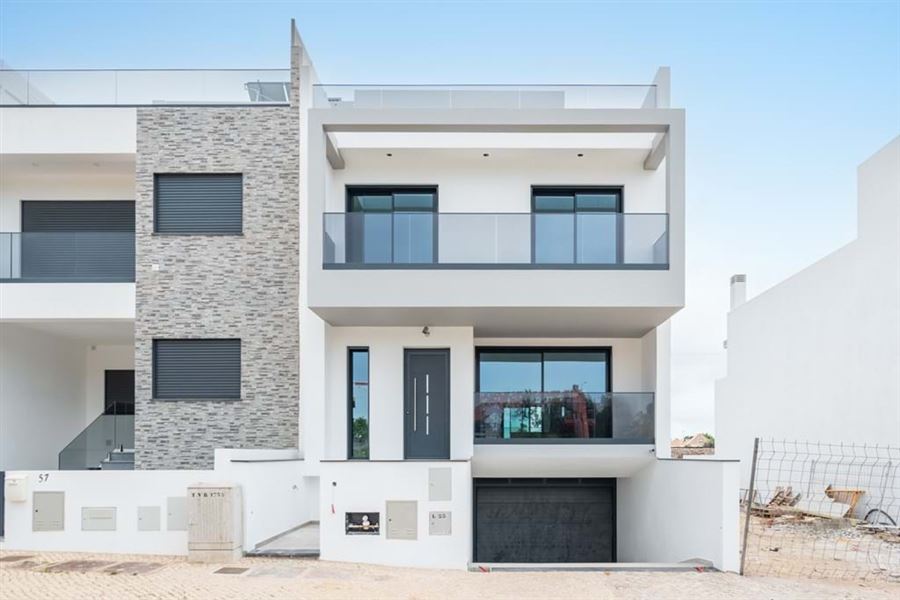 This brand new three bedroom townhouse in Tavira boasts prime location, within walking distance to essential amenities and a short drive from the beach. Currently in its final construction phase, this townhouse spreads across two floors, a basement, and a swimming pool.The ground floor comprises a large living/dining room, a fully equipped kitchen, a bedroom, a guest bathroom and a storage room. Outside, a terrace and a swimming pool create an inviting space for gatherings and relaxation.On the first floor, you’ll find two bedrooms, each boasting en-suite bathrooms, along with an extra bathroom and a versatile room that could be used as an additional bedroom or an office. The basement offers ample parking and storage space, along with a convenient bathroom and laundry facilities. Furthermore, a generous roof terrace provides panoramic sea views.Additional features include:underfloor heating, double glazed windows, electric shutters, fitted wardrobes, solar panels, security alarm, and more.Ideally situated, this townhouse is a mere seven-minute stroll from Tavira Plaza mall, offering a diverse range of amenities including restaurants, shops, and a cinema. Nearby, residents can enjoy public swimming pools, tennis courts, football fields, and a scenic public park. Moreover, the property is just a five-minute drive from various piers, providing easy access to breathtaking beaches such as Praia da Ilha de Tavira and Praia.