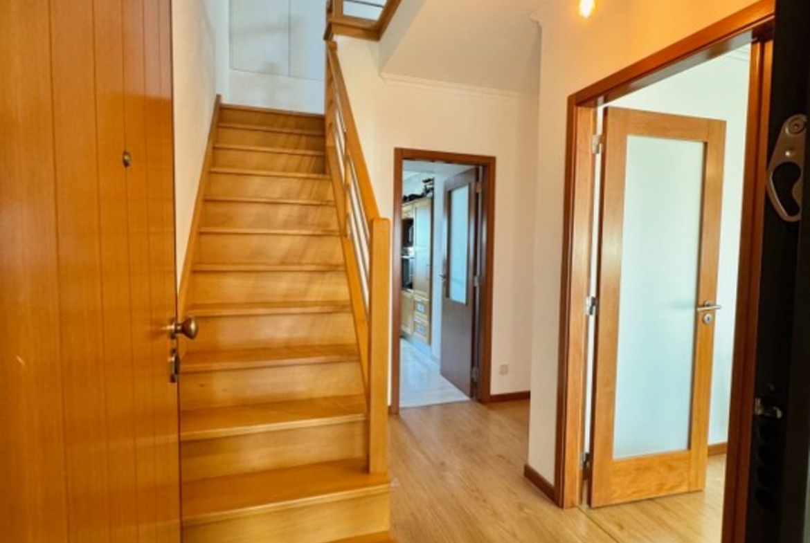 It is a fantastic T3 Duplex apartment with three bedrooms, one of them suite, all with built-in wardrobes, a sunny living room with fireplace and a magnificent attic.
