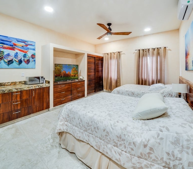 This exquisite villa offers full air conditioning, a two-car garage, and unparalleled access to Puerto Aventuras’ pristine beaches. It stands as a sanctuary of luxury and elegance, offering a rare opportunity to experience the pinnacle of beachfront living in Mexico’s Riviera Maya.
