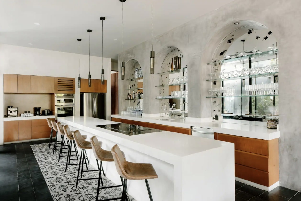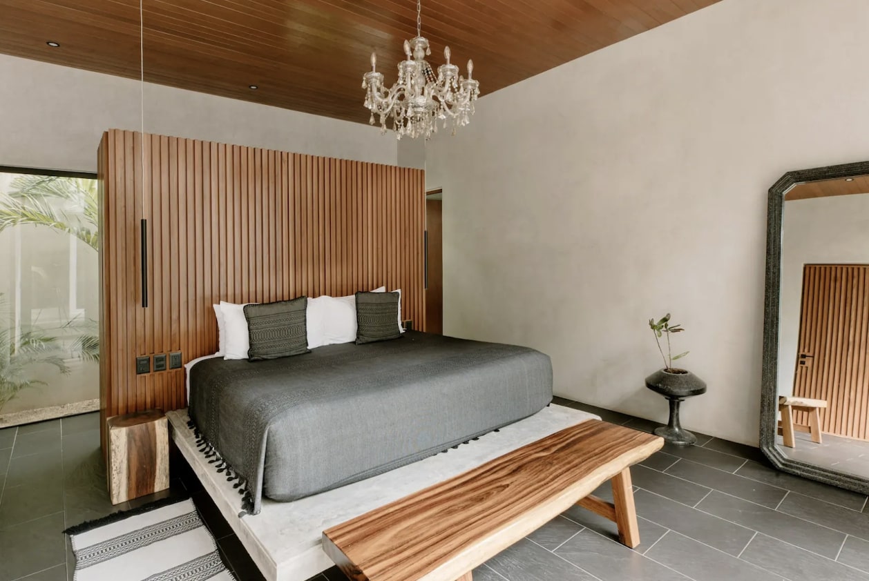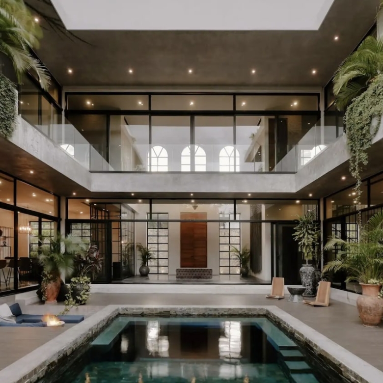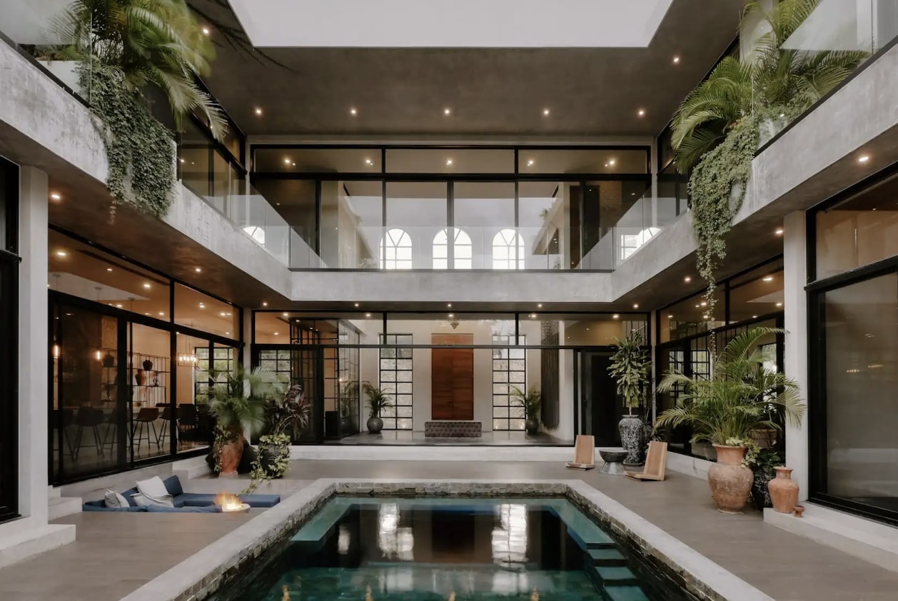 Step into a world of indulgence where seamless indoor-outdoor living is the essence of the design. The residence boasts two spectacular pools—one designed for serene lounging and another for invigorating lap swims—both framed by lush tropical landscaping that mirrors Tulum’s untouched beauty. Two sunken lounges with fire pits create an intimate ambiance under the stars, while the chic cabana lounge and fully equipped bar set the stage for unforgettable social gatherings. For the ultimate entertainment experience, the stadium-style seating area and state-of-the-art private theater offer a cinematic escape in the heart of the jungle.