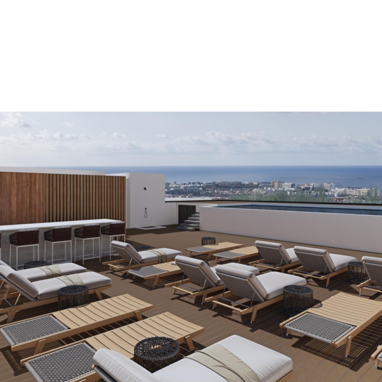 Step outside onto the rooftop garden and discover an oasis of leisure and relaxation. Take a refreshing dip in the communal swimming pool while soaking in panoramic views. Whether you’re basking in the warm Mediterranean sun or enjoying a leisurely swim beneath the azure skies, every moment spent at Celestia is infused with a sense of tranquility and rejuvenation.