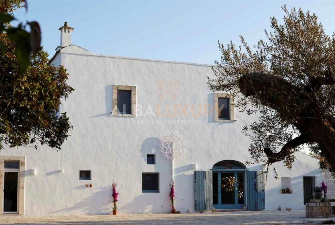 This beautiful Apulian masseria dating back to the 1800s has been skilfully renovated into a luxury residence.^The iridescent white of the masseria contrasts powerfully with the bright blue of the sky, creating a contrast that is impossible not to fall in love with.^The structure, made entirely of white stone, houses 7 luxurious rooms, furnished with taste and simplicity.^The old caretaker’s house has been completely renovated and converted into a wonderful annexe with a large kitchen, two bedrooms, two bathrooms and a 100 square metre veranda with table, chairs and sun loungers, set in the lush vegetation of the structure^Behind the masseria is a beautiful greenhouse completely surrounded by a garden of typically Apulian fruit trees and plants^Here time dilates: the botanical garden, the winter garden, the cherry orchard: endless spaces of beauty for lazing about and enjoying an authentic Apulian experience.^The masseria is set in the tranquillity and beauty of the Polignano a Mare countryside, just a few kilometres from the most important tourist destinations in Puglia: Grotte di Castellana, Trulli di Alberobello, Castello di Conversano, Valle d’Itria.^^,