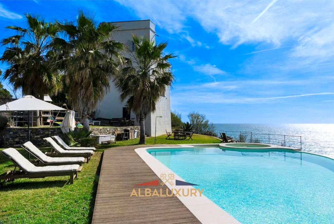 This extraordinary luxury residence, a true historic gem with direct access to the sea and breathtaking views, is currently available on the market. Positioned on a charming promontory between Imperia and Sanremo, Liguria, this exclusive property is a Roman watchtower dating back to the 16th century, beautifully renovated on an interior surface of 330 sqm. Its renovation aims to preserve its historical importance while offering all modern conveniences. Surrounded by a vast 4000 sqm garden, enhanced by a panoramic swimming pool, it represents a perfect balance between history and modernity.^^During the Western Roman Empire, this tower served as a watchtower against the Saracens, offering unique historical value. Located along the picturesque coast of Liguria, between breathtaking cliffs and pebble beaches, it is a paradise for sea and nature lovers.^^Access to the residence is via an ancient suspension bridge, leading to a tower spread over three spacious and light-filled floors, with a basement converted into a spacious wine cellar. The structure has been restored respecting the original architecture: on the ground floor we find a spacious kitchen and dining room, while the first floor hosts a living room with breathtaking panoramic views. The sleeping area on the second floor includes two bedrooms, two bathrooms, a large walk-in wardrobe and a panoramic terrace. Next to the tower, there is a separate building with a bedroom and bathroom, ideal for service personnel.^^The extensive terraced garden, with an infinity pool overlooking the sea, provides an idyllic setting. An annexe with a small independent flat adds further practicality. Stone paths lead to an enchanting circular cliff terrace and private beach. With four full parking spaces, this ‘pieds dans l’eau’ property truly represents a unique opportunity in Liguria.,