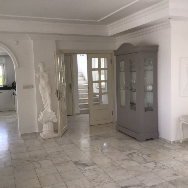 From the arched passageways to the detailed ceiling moldings, every corner of the house reflects thoughtful design. Large staircases with marble steps connect the two floors seamlessly, while decorative lighting and selected artwork enrich the home’s character.