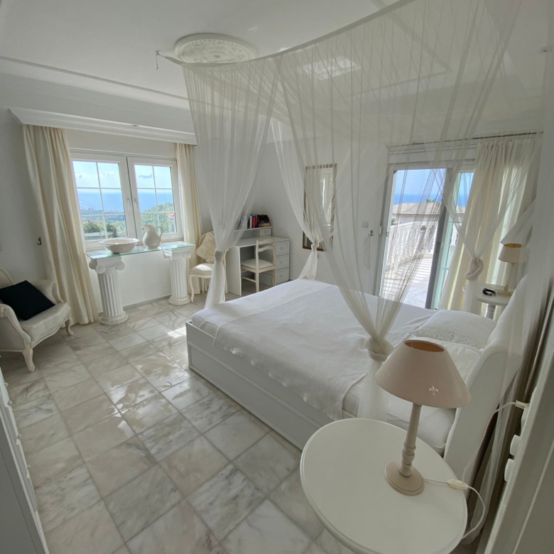 The villa includesmultiple sleeping rooms, all designed to offer privacy, comfort, and brightness. Furnishings include double beds, single beds, classic wardrobes, and stylish accessories. Some rooms open to balconies where the sea view greets you at sunrise.