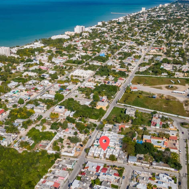 Get to know this cozy single family home at Di Mare development located in Chicxulub, Mérida, Yucatán! This charming two-bedroom, two-bathroom house offers a welcoming retreat, boasting 796 Ft2 of comfortable living space. Situated close to the beach and various supermarkets, this home offers the perfect blend of coastal living and urban convenience. Whether you’re looking for a beach house for the weekends or a permanent residence by the beach, this Chicxulub beautiful home promises a simple and enjoyable living experience. One of the highlights of this house is the private pool, providing a refreshing escape on warm Yucatán days. Relax on the terrace or take a dip in the pool, creating moments of tranquility in your own outdoor space. With parking space for one car, your arrival and departure are made convenient and stress-free.