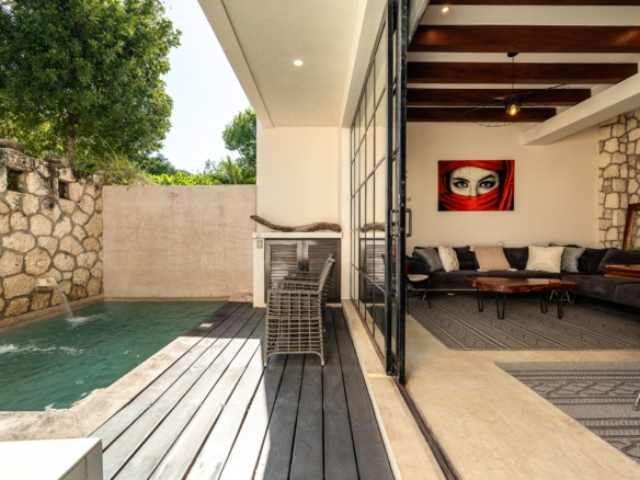 Cienfuegos Villa 1 is a refined three-bedroom townhouse in the exclusive boutique development of Cienfuegos Tulum, located in the prestigious Aldea Zama community. Designed with Mediterranean-inspired architecture and locally sourced materials, this residence seamlessly integrates luxury with the natural beauty of Tulum.