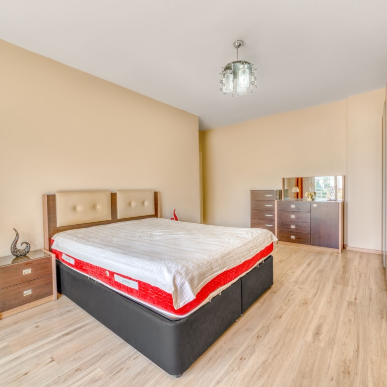 Five rooms give plenty of options. The main bedroom uses darker wood furniture and neutral tones, leaning classic. Children’s rooms are colorful and functional. For buyers, this flexibility means you can adapt spaces: one room for a home office, another for a gym, or even a guest suite.