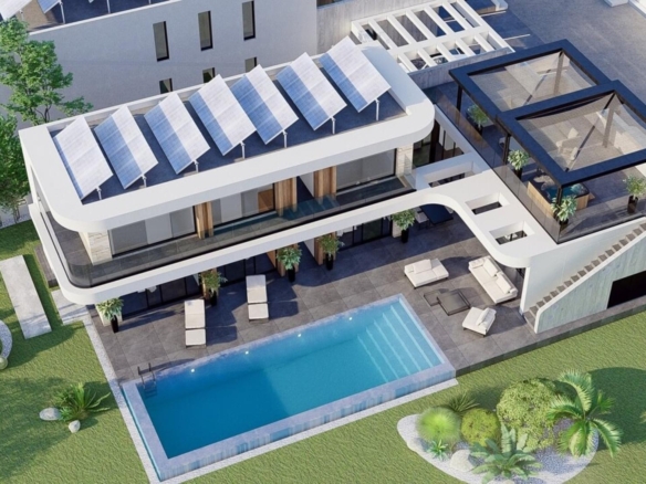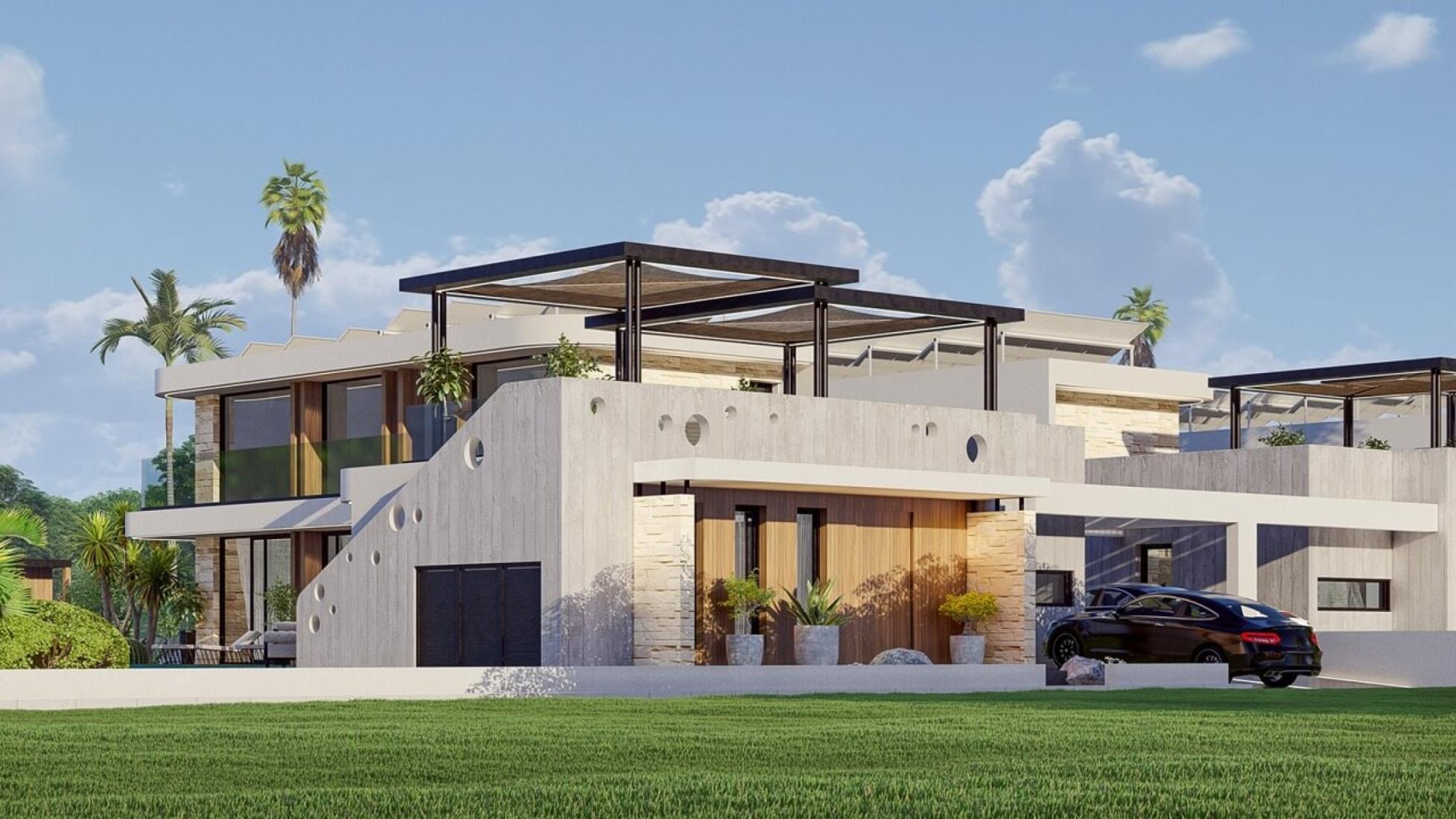 Experience modern luxury in this 3 bedroom modular bungalow with an en suite. Set on a 645㎡ plot, it offers ample space and a roof garden as an additional option. Smart home features, high quality materials, and large windows create a seamless blend of design and comfort. Outside, enjoy an infinity pool, roof garden, BBQ area, and fire pit. A wood cabin adds versatility, while solar panels and insulation enhance efficiency. With a beach and pool steps away, this is coastal living at its finest.