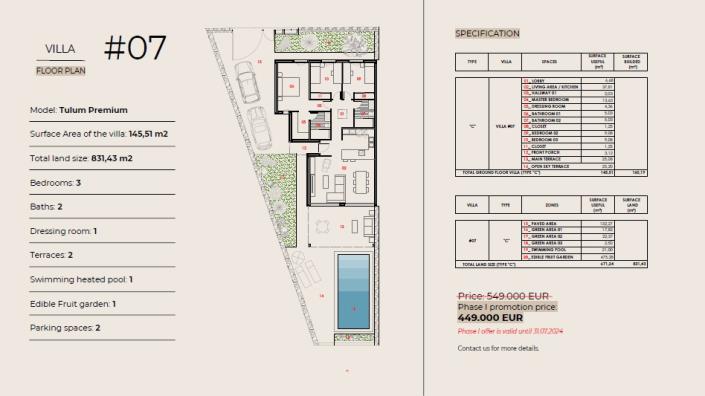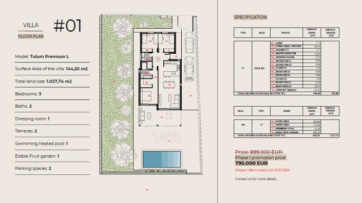 * Villa sizes from 139 m2: Generous living spaces designed for comfort and modern lifestyles.