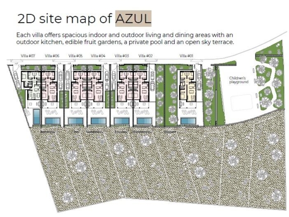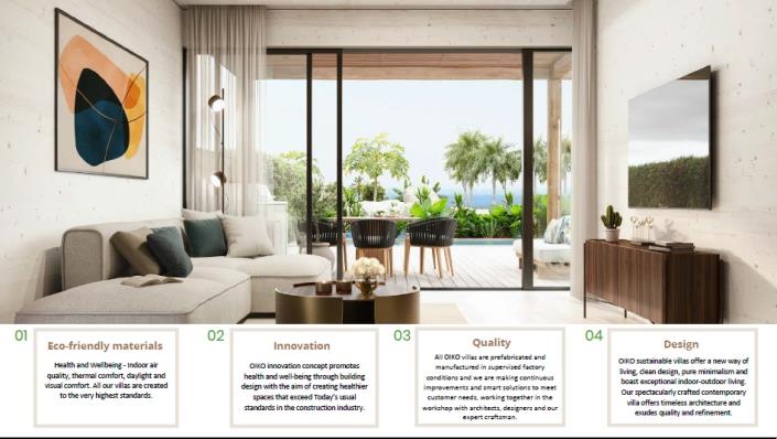 * Seven luxury spacious sustainable villas: An intimate community ensuring privacy and exclusivity.