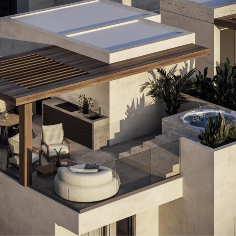 Meticulously designed residences with the higher standards, only 500m from the sea very close to schools, supermarkets and all amenities. This gated complex give a lot options to the buyer to upgrade and even add a roof garden or an extra room. Swimming pools and external shutters are also optional.